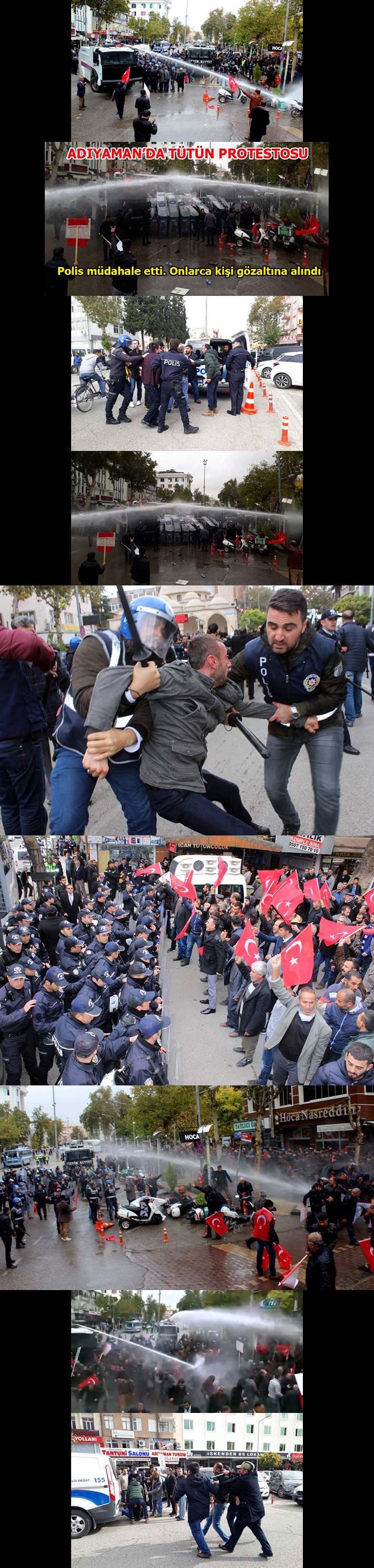 Adıyaman merkezinde bugün toplanan binlerce kişi tütün yasağını protesto etti Binlerce kişi valiliğe yürüdü polis panzerlerle önünü kesti. Halk dir…