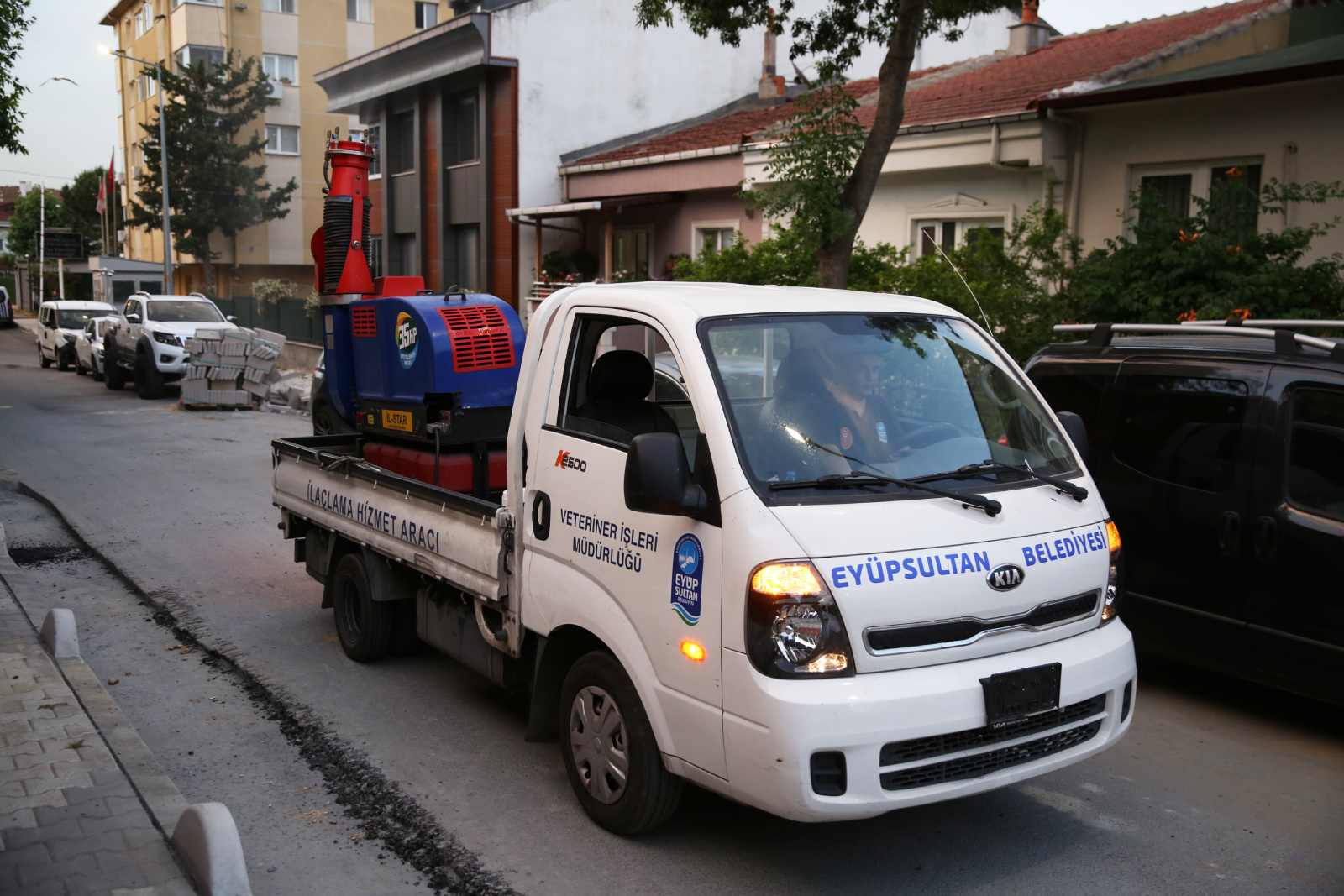 İlçede bulunan 29 mahallede akşam saatlerinde 8 araçla ULV ilaçlaması yapan Eyüpsultan Belediyesi ekiplerine, İstanbul Büyükşehir Belediyesi de 2 araçla destek oluyor. Toplam 10 araç ile ilçenin 2187 sokağında program dâhilinde her gün en iyi ve etkili biyosidal ürünler ile ilaçlama gerçekleştiriliyor.