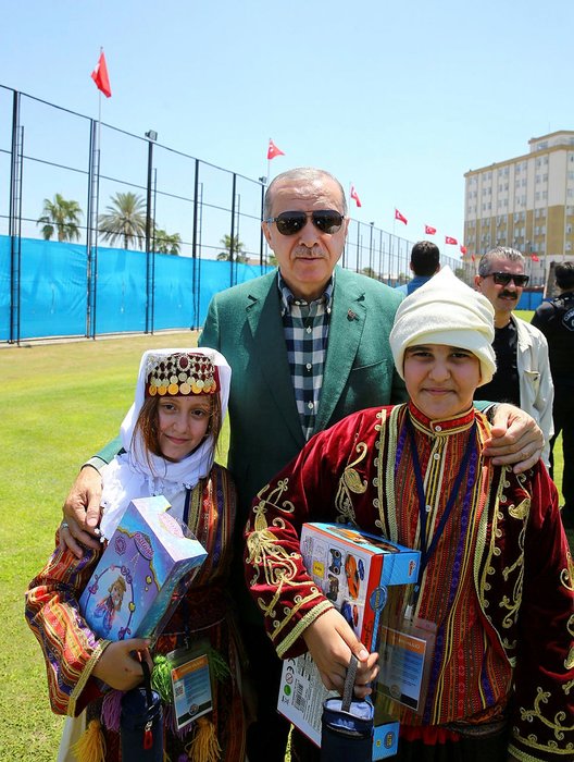 Cumhurbaşkanı Erdoğan kendisini karşılamaya gelen çocuklara oyuncak vermeyi yine unutmadı..