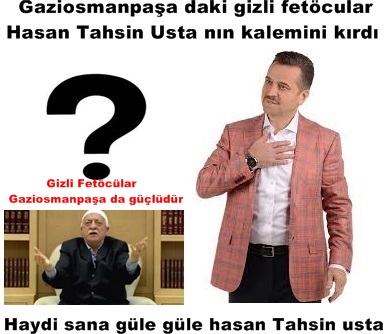 Eski çalışanların birçoğu ise hala hazırda belediye görevdeler hem de üst kademede olanlar bile var. İşte bu insanlar Hasan Tahsin Ustanın kalemini kırdı çalışamaz durumda göstermeye çalıştılar ve önümüzdeki dönemlerde ise yerel seçimlerde Hasan Tahsin Usta kesin gözüyle adaylığı gelmeyecek şimdi soruyorum Hasan Tahsin Usta ya geçmiş de ABD DEKİ Pensilvanya’daki o eve gidip FETÖ elebaşı Fetullah Gülen’in elini öpüp icazet alıp Gaziosmanpaşa da görev almışlardır. Bu insanlar kimlerdir. Bu kişilerin 3 kişi oldukları tahmin ediliyor unların kim olduğu bul ve düşmanların bunlardır. Biz biliyoruz ama birileri her şeyi sümer altı yaptı SANA TAVSİYEMİZ hasan Tahsin usta o koltuğa oturduğun dan beri bizle niye çalışmadın onlardan korktun ve şimdi sıra sende korktuğun için sana güle güle eskiden büronda çok çayını içtim bu yazıyı onun hatırına yazıyorum insanlık görevim bu Hasan Tahsin usta düşmanın uzak da değil yakınında bunu bil her nefes alışını biliyorlar bizden söylemesi