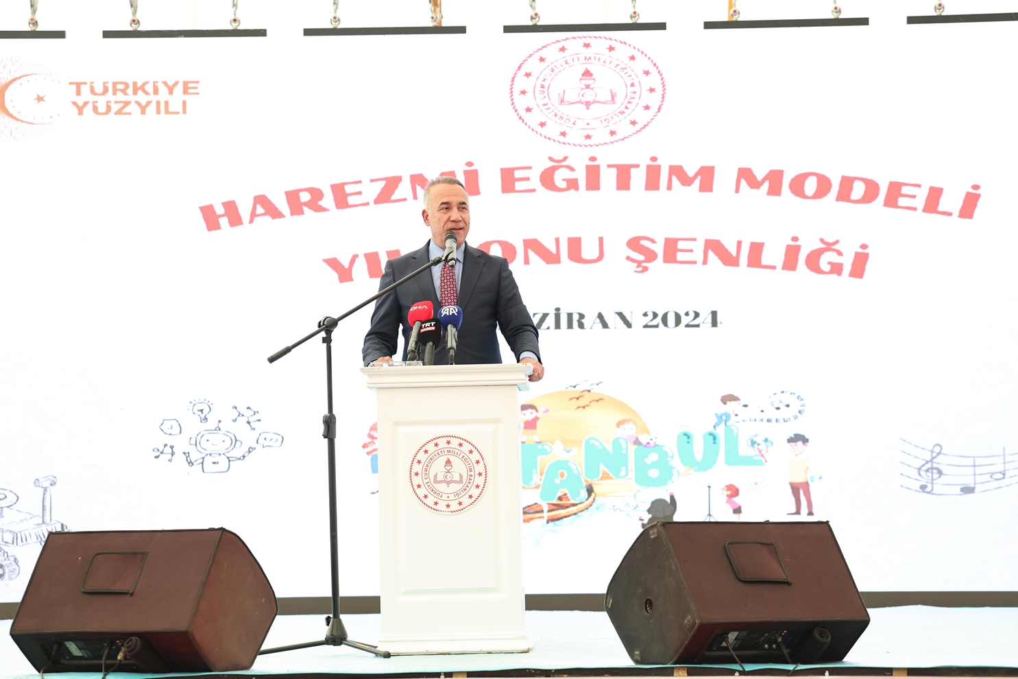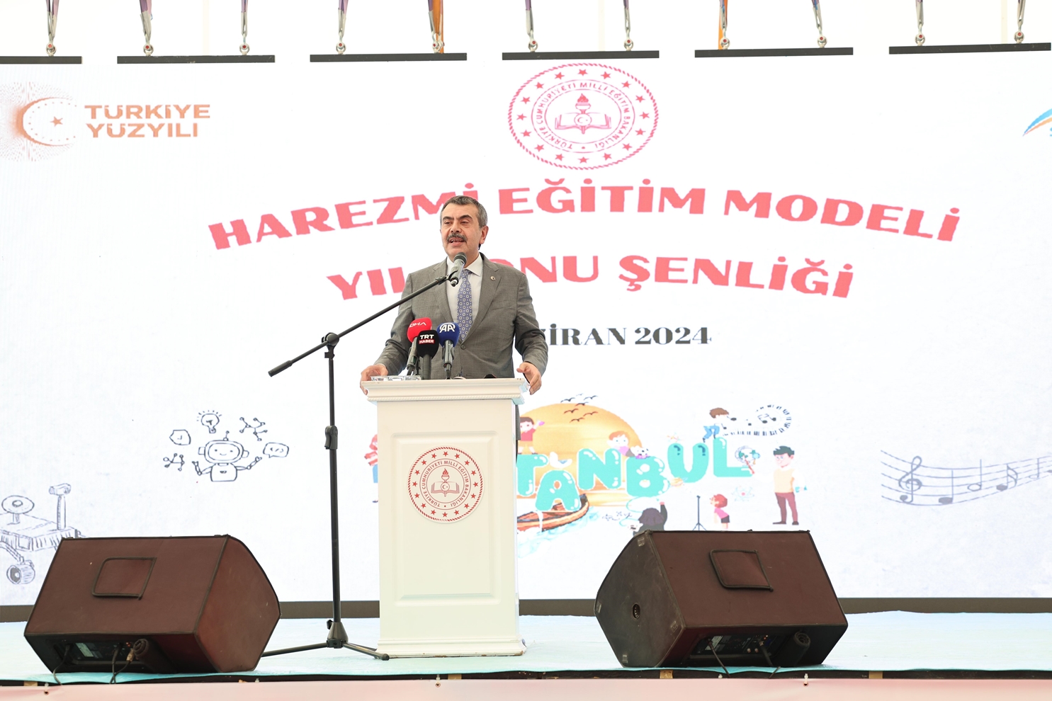Milli Eğitim Bakanı Yusuf Tekin; “Biz çocuklarımızın Harezmi modelinde olduğu gibi okulda öğrendikleri teorik bilgileri pratik hayata geçirebilecek beceriye dönüştürebilmeleri için müfredatı değiştirdik. Bugün burada Harezmi Modeli için 71 okulumuz var. İnanıyorum ki müfredatımız hayata geçtikten sonra 76 bin okulumuzun tamamı, burada gördüğümüz şu şenliklere sahip çıkacaklar. Bize bu yolculukta destek olmaya çalışanlar var; engellemeye çalışanlar var. Destek olmaya çalışanlardan bir tanesi karşımızda oturuyor. Belediye Başkanımız Abdurrahman başkanımız kendisini alkışlıyoruz. Bize bu şekilde destek olan, olacak olan, olmak, isteyen herkese kapımız açık; desteklerini bekliyoruz” diye konuştu.