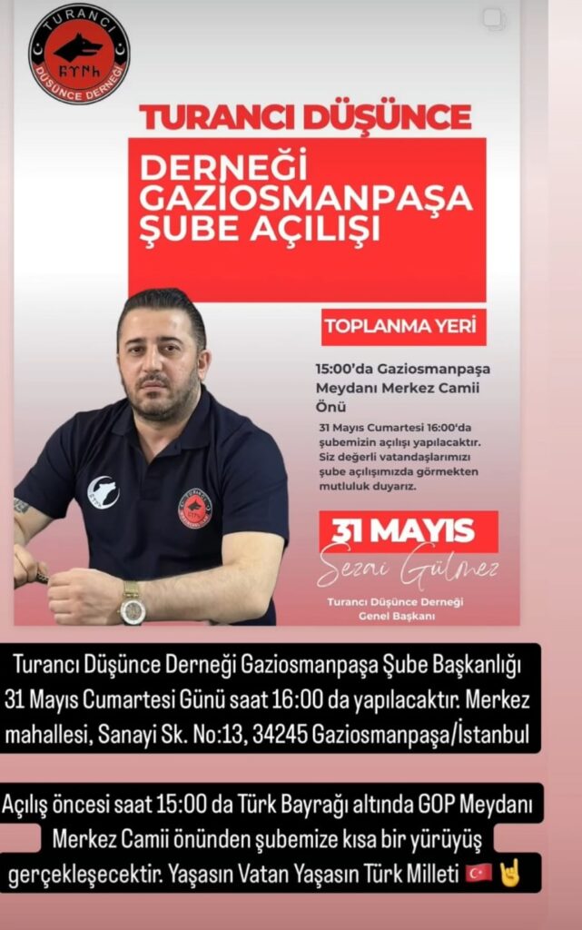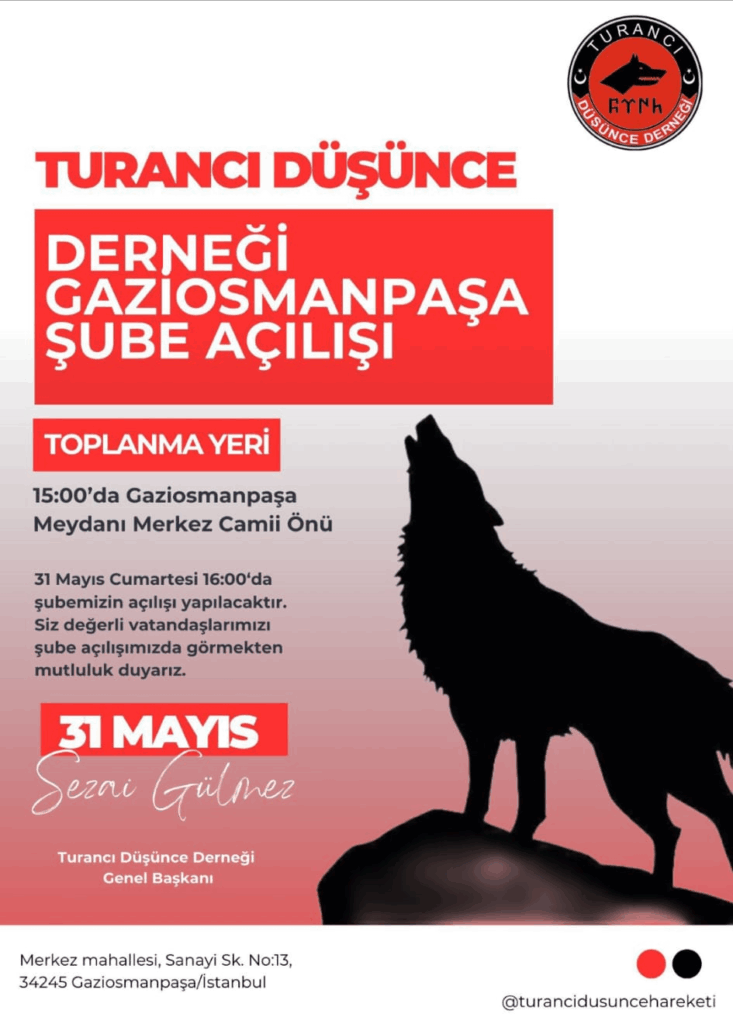 İstanbul Genelinde bir çok şubesini faaliyete geçiren turancı düşünce derneği 31 Mayısta Gaziosmanpaşa Şubesini açmayı hedefliyor.