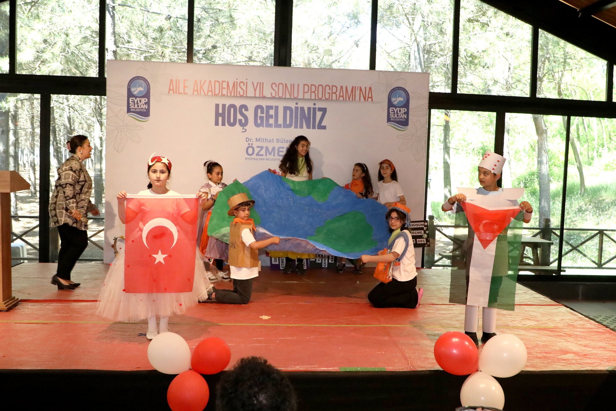 Eyüpsultan Belediyesi tarafından “Aile Her Şeydir” prensibiyle, 2 yaşından itibaren tüm çocuklar ve yetişkinlere eğitim, seminer ve atölye çalışmaları düzenleyen Aile Akademisi, 2023 – 2024 eğitim sezonunu tamamladı. Çiftalan Gençlik Kampı’nda düzenlenen kapanış programında öğrenciler, çok özel bir gösteriye imza attı.