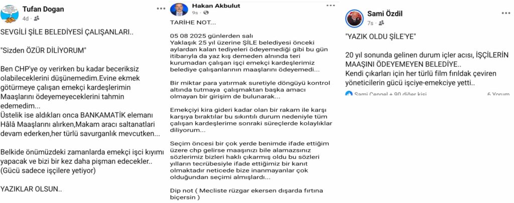 AK Parti Şile Teşkilatı olarak belediye çalışanlarımızın her zaman yanlarında olacağız ve haklarını savunacağız!” açıklamasını yaptı. Ayrıca Şile’de Belediye çalışanlarının yaşadığı maaş sıkıntısı da sosyal medyada gündem oldu.