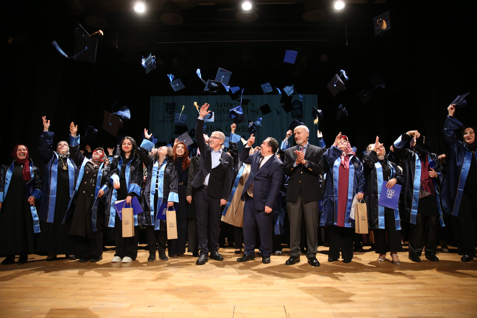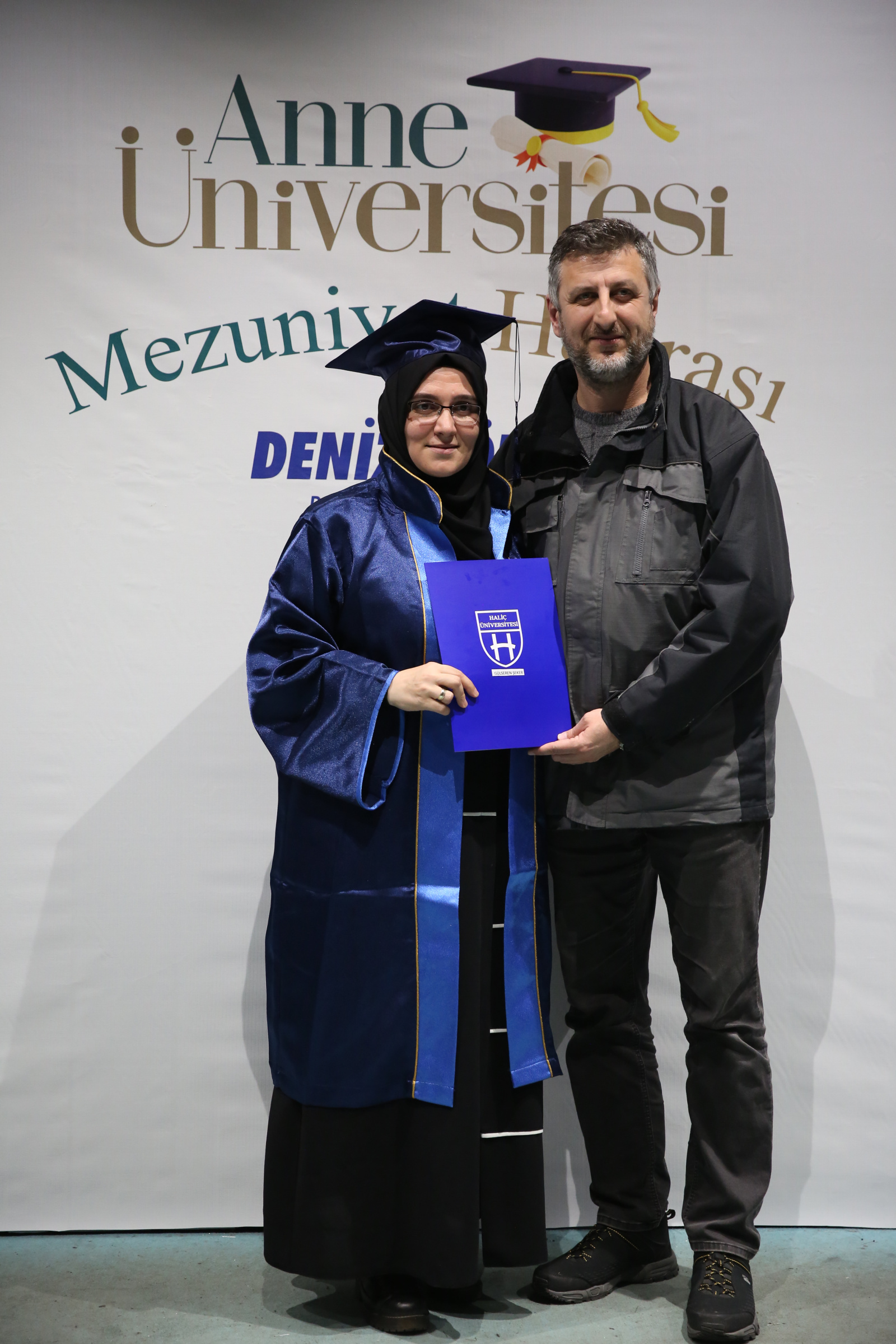 Haliç Üniversitesi Alibeyköy Kampüsü’nde bir ay boyunca farklı fakültelerin akademisyenlerinden eğitimler alan, kampüs hayatını deneyimleme şansı bulan annelere, mezuniyet belgelerini Eyüpsultan Belediye Başkanı Deniz Köken, Eyüpsultan Kaymakamı İhsan Kara ve Haliç Üniversitesi Sağlık Bilimleri Fakültesi Dekanı İrfan Papila verdi.