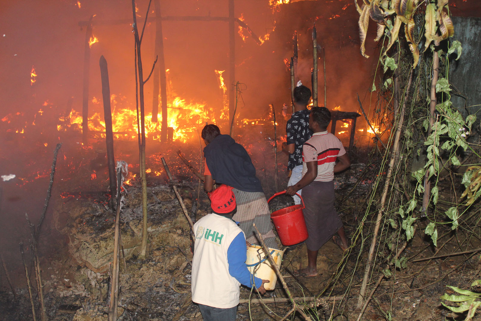 Önceki gün gece saatlerinde Bangladeş’in Cox’s Bazar şehrinde Arakanlı Müslümanların kaldığı 5 numaralı kampta yangın çıktı. Yangında, bin 200 ev kısmen ya da tamamen yanarken, yaklaşık 7 bin Arakanlı Müslüman evsiz kaldı. İHH İnsani Yardım Vakfı, yaşanan yangının ardından acil yardım çalışmalarına başladı.