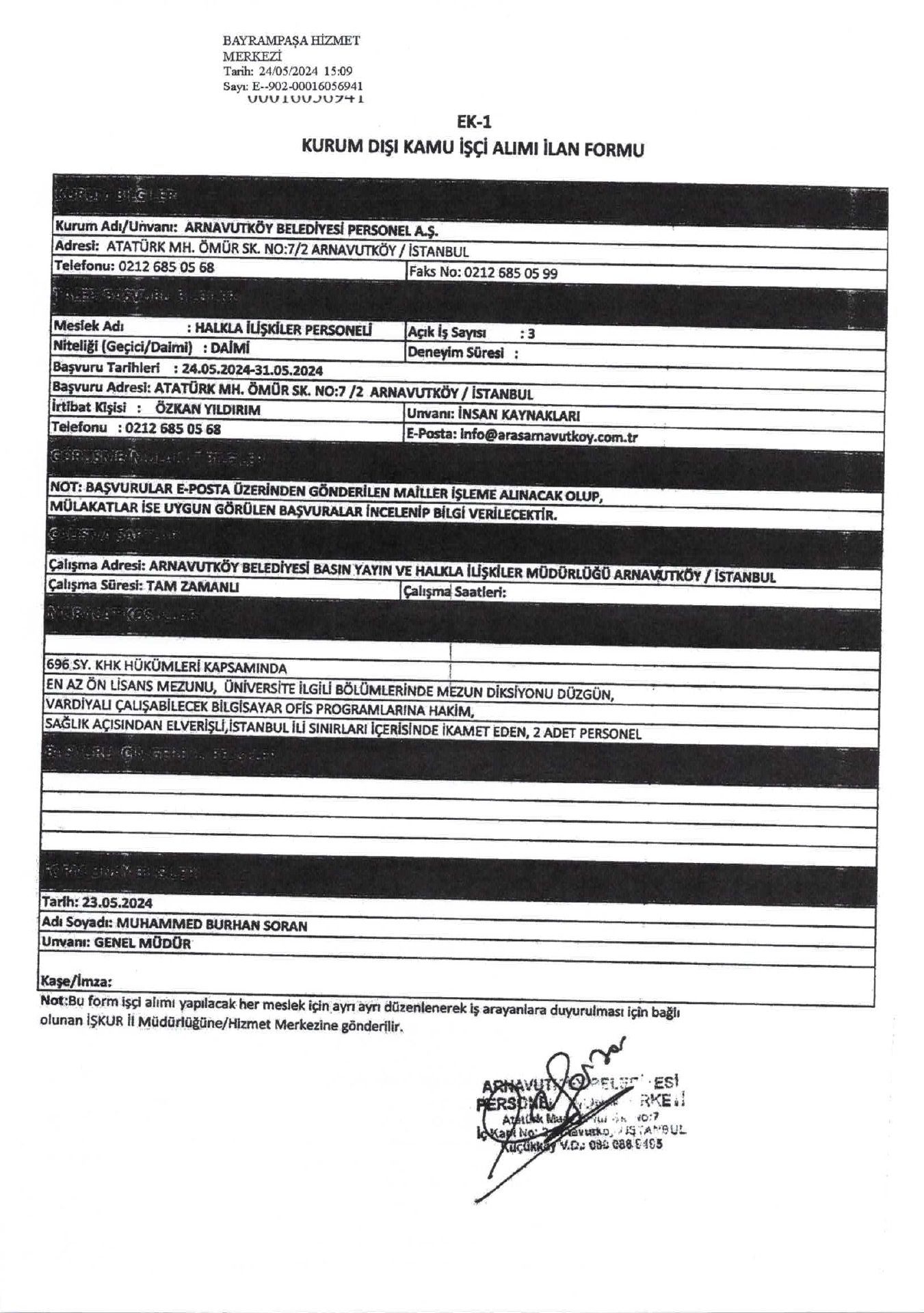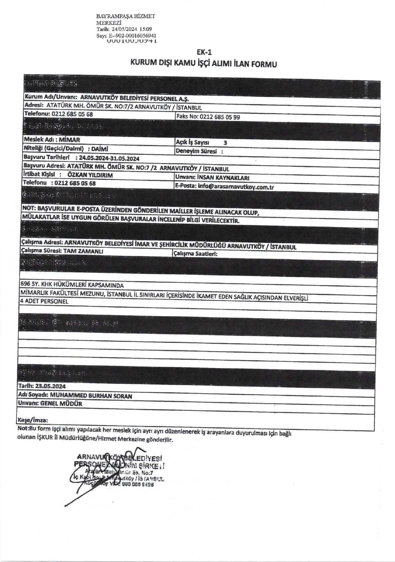 İstanbul Arnavutköy Belediyesi, 11 İşçi Alacak. Son başvuru tarihi 31 mayıs 2024