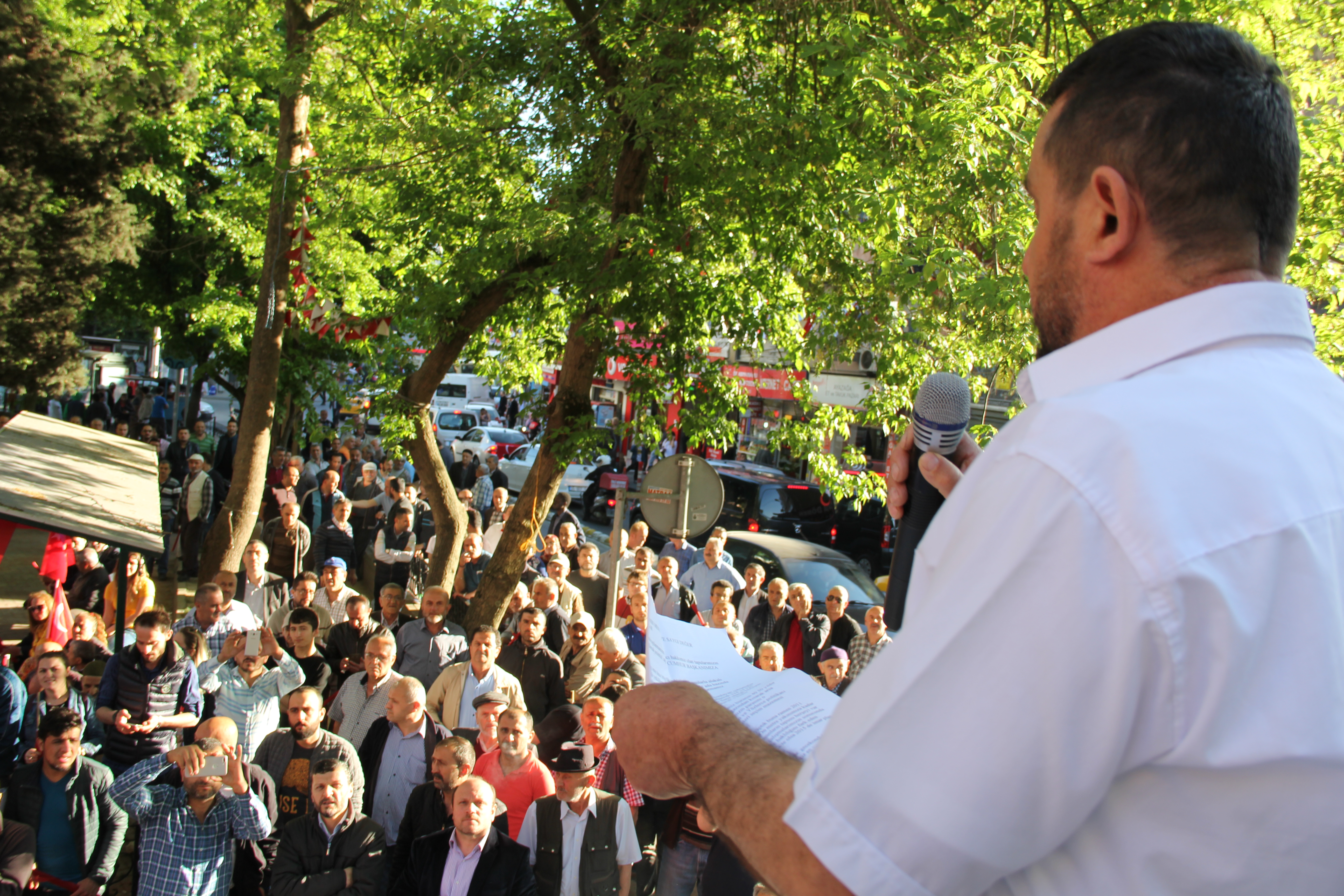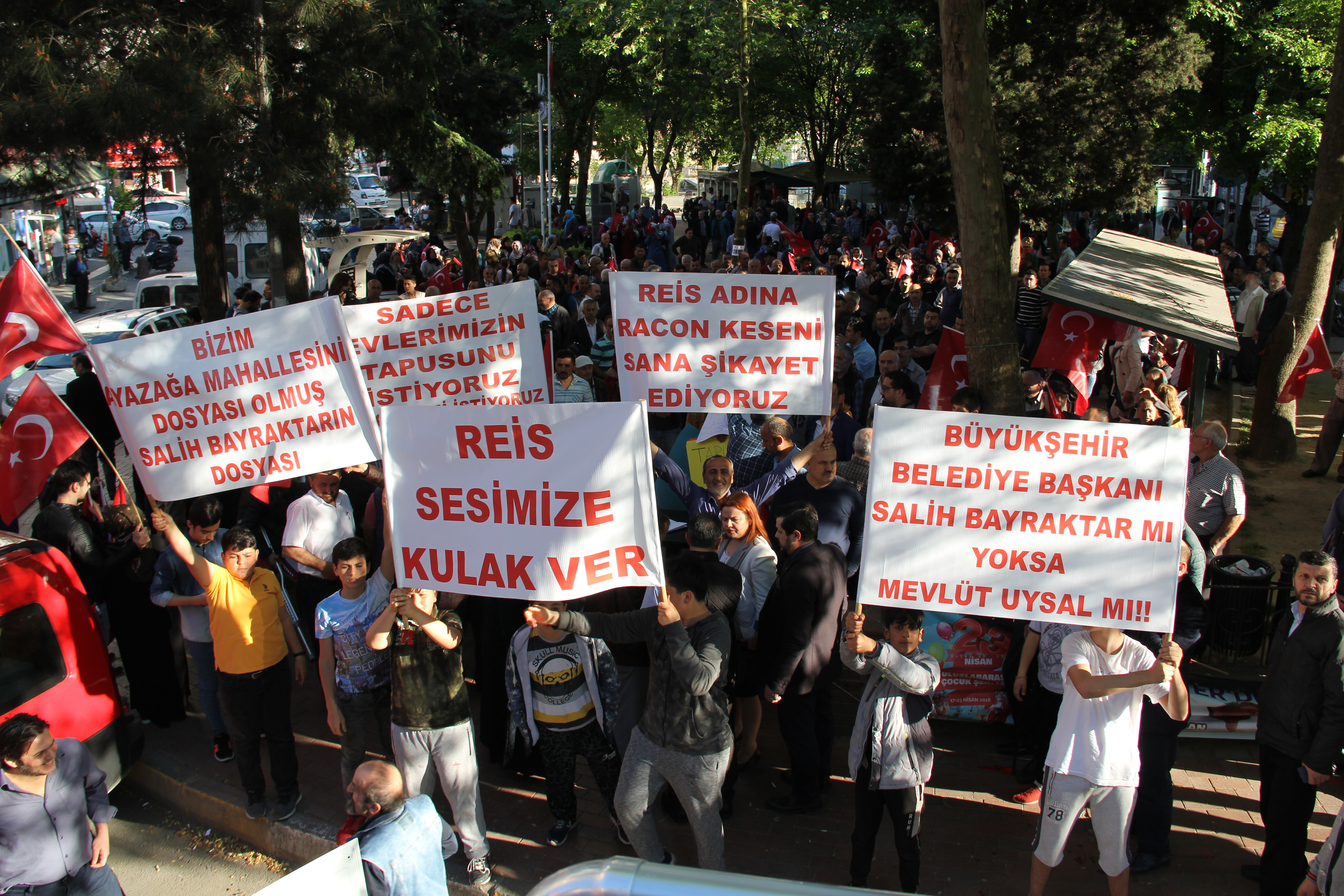 Ayazağa’da toplanan yüzlerce kişi AKP’ ilçe Başkanı Salih Bayraktar’ın tapuları engellediğini iddia ederek Erdoğan’a seslendi.