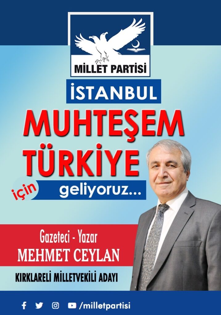 MİLLET PARTİSİ Milletvekili adayı olarak tüm okuyucularıma, dostlarıma en derin sevgi, saygı ve selamlarımı iletiyorum.