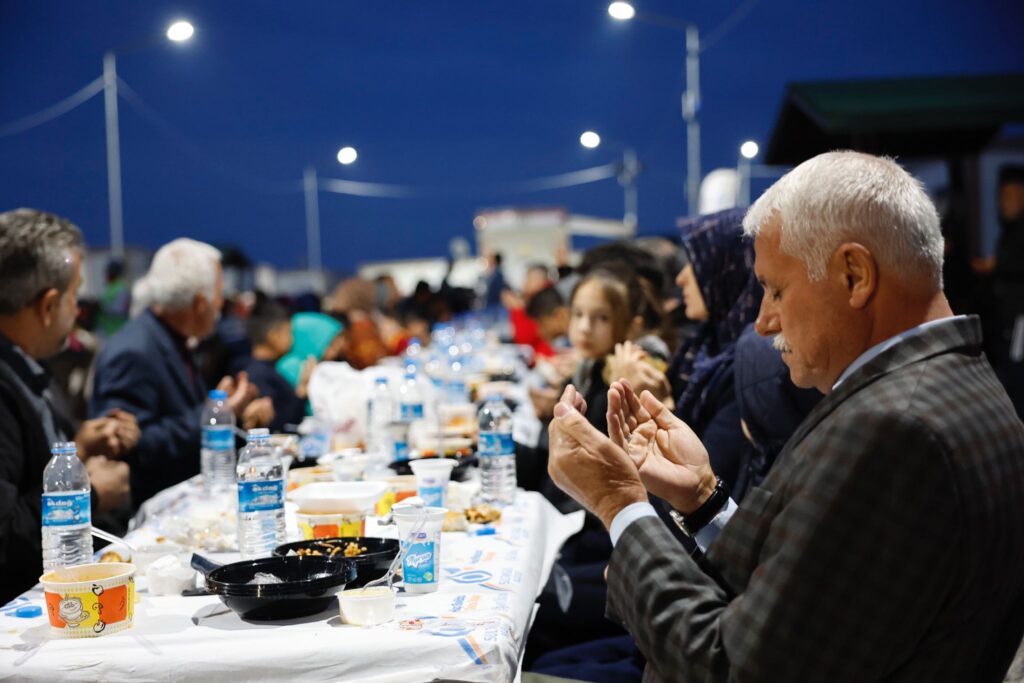 İftarın yaklaşmasıyla birlikte Konteyner Yaşam Alanına uzun bir sofra kuruldu. Ezanın okunmasının ardından Başkan Dursun, depremzedelerle birlikte orucunu açtı. Başkan Dursun, “Sultangazi Belediyemizin Konteyner Yaşam Alanında, sevgiyle, muhabbetle, hep birlikte yaralarımızı sarıyoruz. İlk iftarımızı kardeşlerimizle birlikte gerçekleştirdik. Allah tuttuğumuz oruçları kabul eylesin, bir daha böyle bir felaketi yaşatmasın” diye konuştu. Başkan Dursun, iftar sonrası çay eşliğinde depremzedelerle koyu bir sohbet gerçekleştirdi.