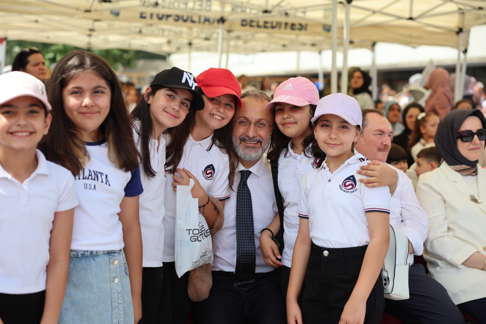Gösterilerin ardından çocuklar ve velilerle bir araya gelerek sohbet eden Başkan Dr. Mithat Bülent Özmen, bu özel günün anısına onlarla karne hatırası fotoğrafı çektirdi.