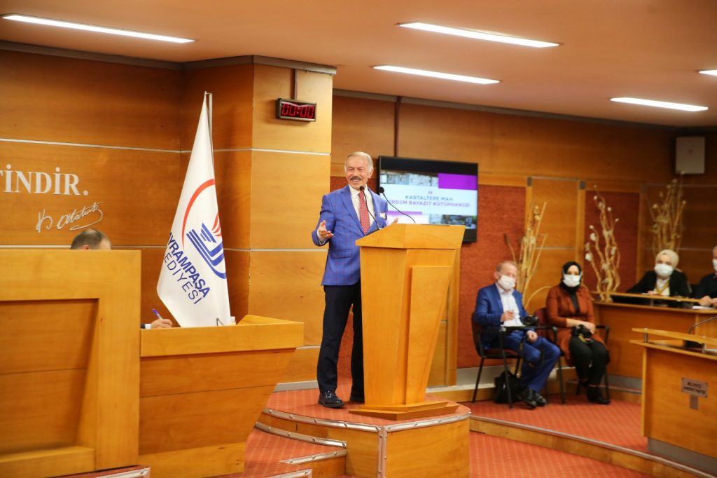 2021 Yılı Faaliyet Raporu’nu görüşmek için toplanan Bayrampaşa Belediye Meclisi, raporu oy çokluğu ile onayladı. 2021 yılında hayata geçirdikleri projelerin bir bölümünü ve yeni hedef projelerini sunum eşliğinde anlatan Bayrampaşa Belediye Başkanı Atila Aydıner, en önemli hedef projelerinin 40 dönümlük millet bahçesi ve 300 yataklı modern hastane yapmak olduğunu söyledi.
