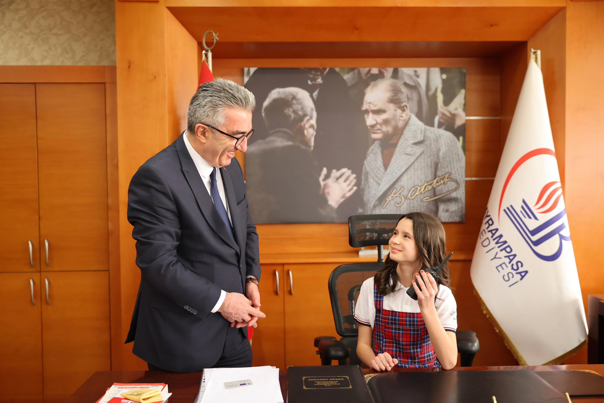 23 Nisan Ulusal Egemenlik ve Çocuk Bayramı münasebetiyle Atatürk anıtına çelenk sunma törenin ardından öğretmen ve öğrencileri makamında kabul eden Bayrampaşa Belediye Başkanı Hasan Mutlu, 23 Nisan’da koltuğunu minik öğrencilere bıraktık. Oldukça heyecanlı olan ‘minik başkanlar Ela, Sahra ve Kerem’ telsizle birimleri denetleyerek görevde olan personelden çalışmalar hakkında bilgi aldılar.