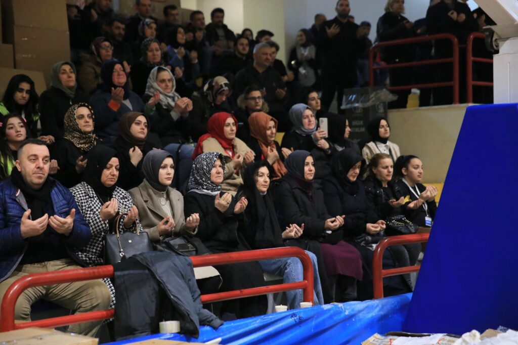 Merkez üssü Kahramanmaraş’ın Pazarcık ve Elbistan ilçeleri olan 7,7 ve 7,6 büyüklüğündeki depremlerde hayatını kaybeden ve enkaz altında kurtarılmayı bekleyen vatandaşlar için yardımların toplandığı Bayrampaşa Semih Erden Spor Salonu’nda Kur’an-ı Kerim okunup dualar edildi.