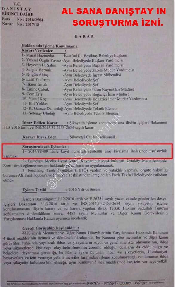 Hazinedar’ın, FETÖ’nün TSK’yı hedef alan Ergenekon ve Balyoz kumpaslarında sahte belge ve bilgilerle aktif rol oynayan Taraf gazetesinin sahibi olduğu Alkım Kitabevi’ne milyonlarca liralık kıyak geçtiği raporda yer aldı. Alkım Kitabevi’nin Beşiktaş’taki yayınevinde, içkili restoran ruhsatının verilmesi kanunlara aykırı bulundu. Hazinedar’ın ikamet ettiği Itri Sokak’taki 2 ev ile ilgili imar usulsüzlüğü yaptığı da müfettişlerce belirlendi. Ruhsatsız yapılan binanın ruhsatının sonra çıkartıldığı ve etraftaki duvarların da kaçak inşa edildiği ortaya çıkartıldı. Ayrıca; özel bir eğitim kurumunun 2015’te yapmak istediği eklentiye imara aykırı olduğu halde izin verildiği ve bunun da imar kanununa aykırı olduğu belirlendi.