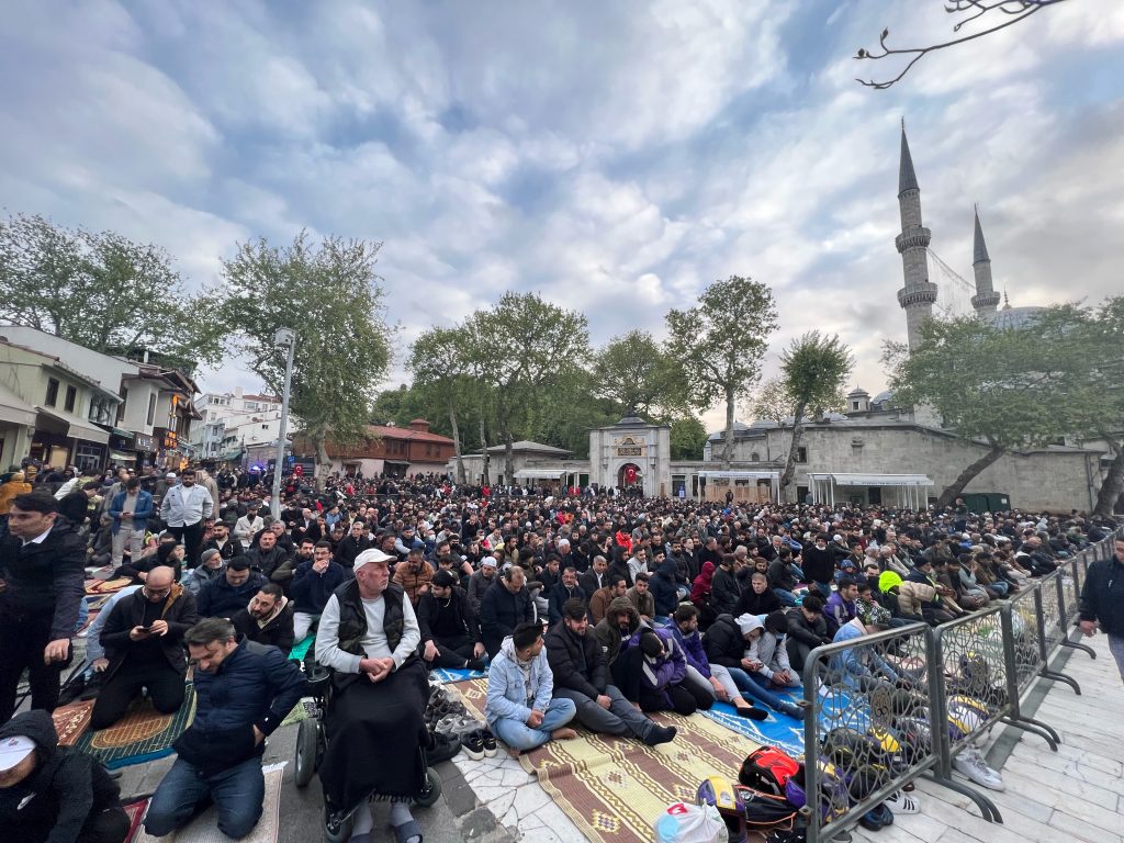 Türkiye’nin ve dünyanın farklı bölgelerinden gelen on binlerce vatandaş, bayram namazı için Eyüp Sultan Camii’ni doldurdu. Tek yürek halinde saf tutan müminler, Eyüp Sultan Hazretleri’nin manevi huzurunda bayram namazı kılmanın huzurunu yaşadı.