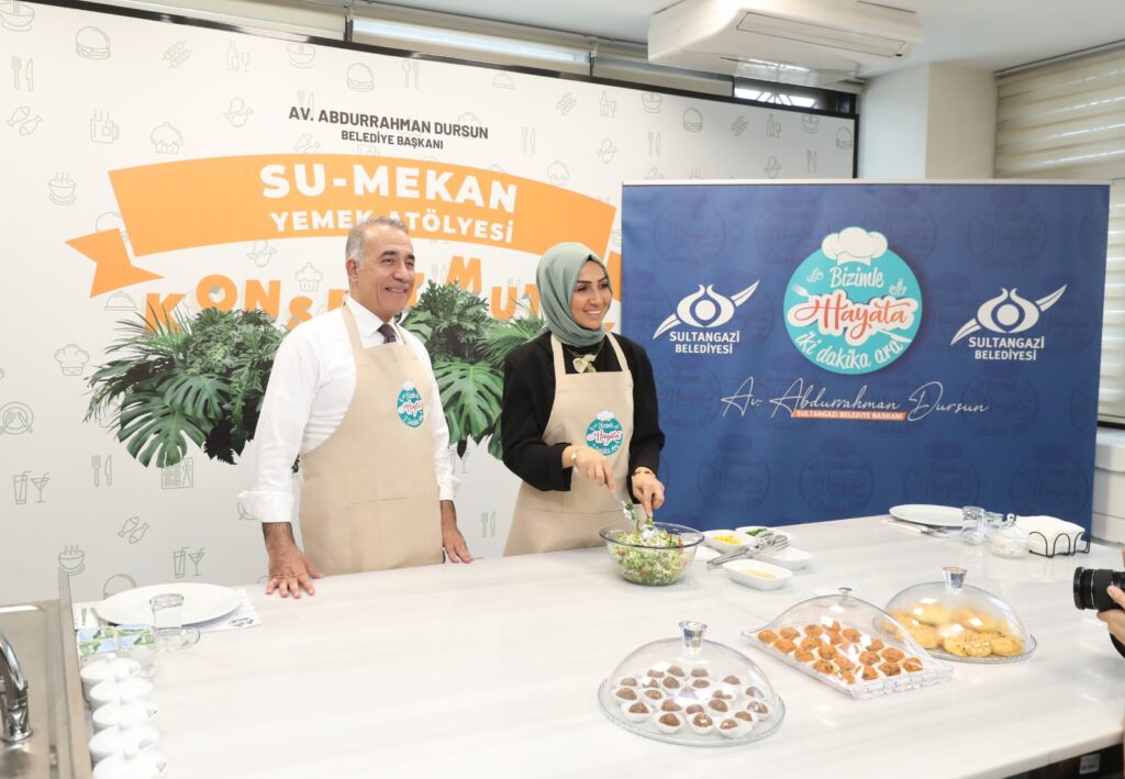 Sultangazi Belediye Başkanı Av. Abdurrahman Dursun’un eşi Tuba Dursun’un ev sahipliğinde “Bizimle Hayata 2 Dakika Ara” programında ilçedeki kadınlar bir araya geliyor. SU-MEKAN Yemek Atölyesi’nde gerçekleşen ”Bizimle Hayata 2 Dakika Ara”nın ilk etkinliği, Başkan Dursun’un katılımıyla gerçekleşti.