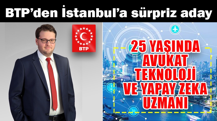 Yerel seçime Türkiye’nin bir çok il ve ilçesinde iddialı ve sürpriz isimlerle giren Bağımsız Türkiye Partisi, (BTP) İstanbul’da da genç bir ismi aday yaptı.BTP’nin İstanbul Büyükşehir Adayı, 25 yaşında genç bir hukukçu ve yapay zeka uzmanı olan Avukat Cihan Erdoğanyılmaz oldu.Baş: Teknoloji gurusu, dijital bir kimlik, hayalleri olan bir genç…İstanbul adayının ismini kamuoyuna ilk kez BTP Genel Başkanı Hüseyin Baş, ‘Evet. Herkes birbirine benzeyen İBB adaylarını açıkladığına göre, artık farklı olanı açıklama vakti geldi… İstanbul’un dijital çağı başlıyor.’ ifadeleriyle açıkladı.Sosyal medya hesabından paylaşım yapan Hüseyin Baş, “Size İstanbul adayımızı takdim etmek istiyorum. Cihan 25 yaşında, harika bir insan, teknoloji gurusu, dijital bir kimlik, hayalleri olan bir genç. Bambaşka bir İstanbul için yola çıktı. Onu yakında çok iyi tanıyacaksınız. Cihan sana emanet İstanbul” dedi.