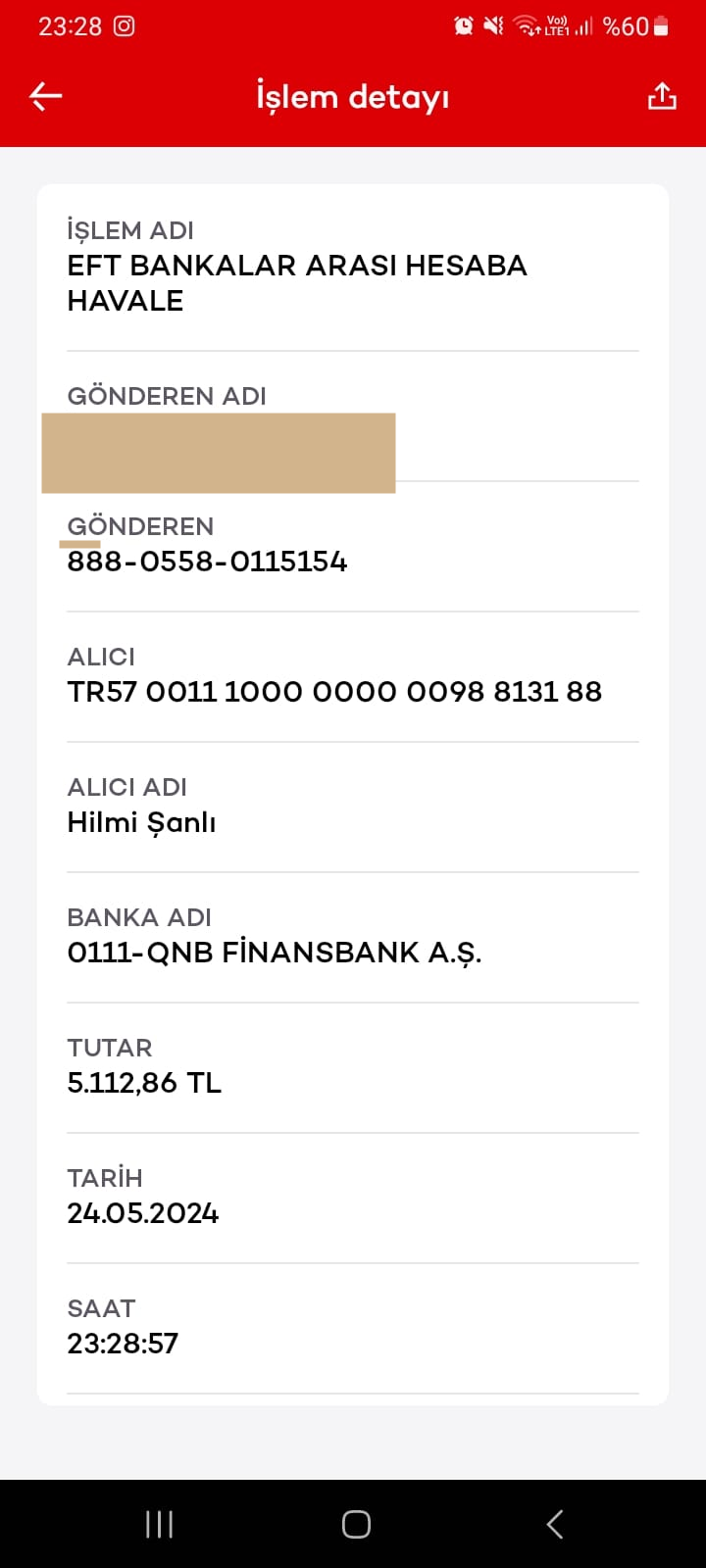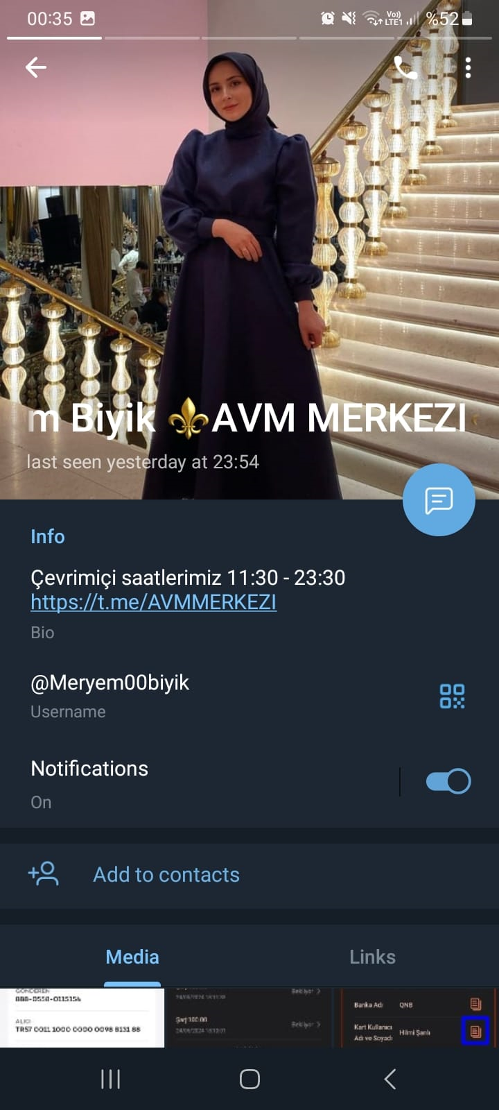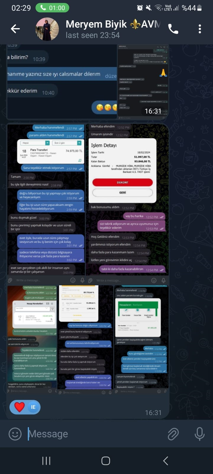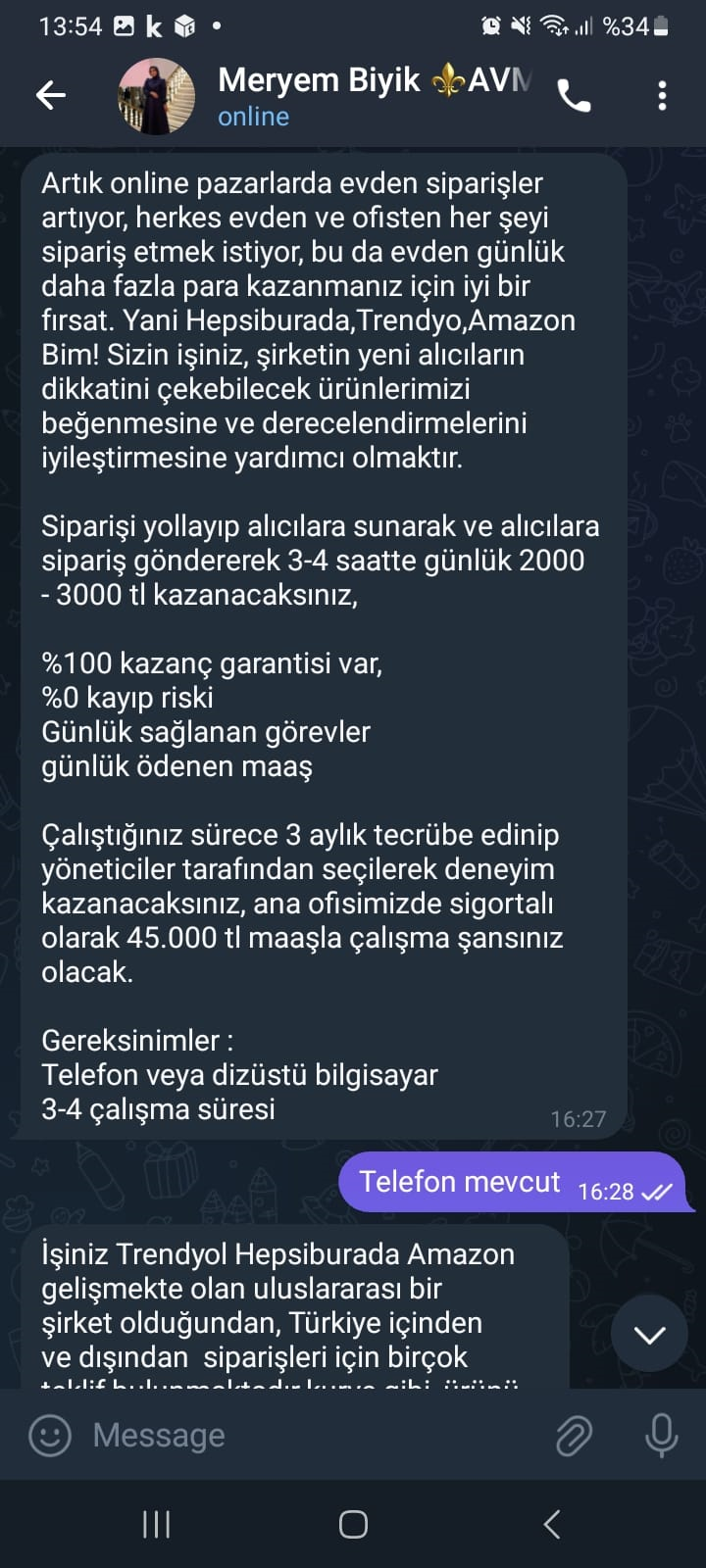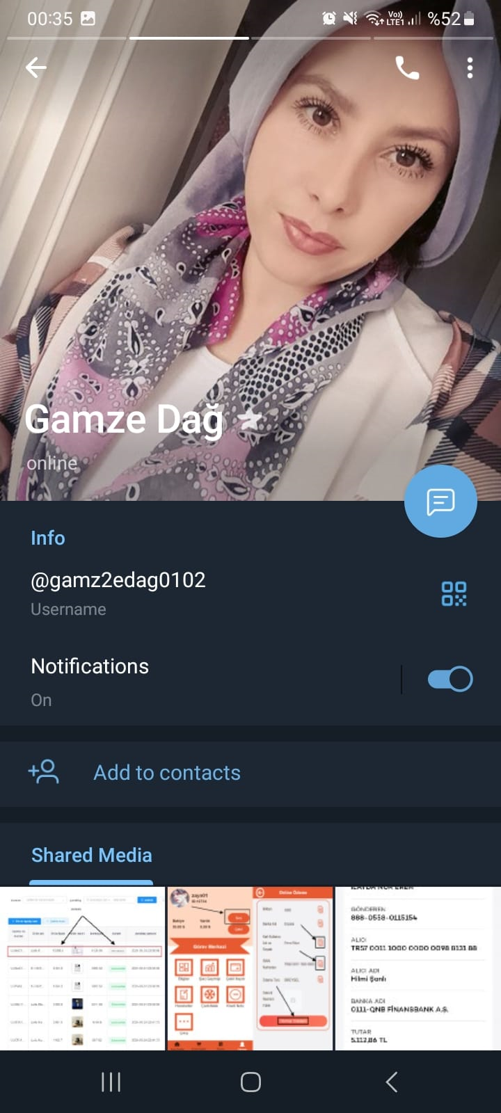 Önceleri WhatsApp üzerinden konuşan çete, yutdışı numarası ile artık telegramdan iletişime geçmeye başladı. Normal Şartlarda Türkiye numarası olan numara birden yurt dışı numarasına dönüştü. Nasıl oldu anlamıyorum işsizim, bir gaflete düştüm parasızım Para kazanmak için okuluma ve babama yardımcı olabilmek için böyle bir tuzağa düştüm nasıl oldu bende anlamadım. Paralar büyük ihtimal Hilmi ŞANLI isimli kişinin hesabında toplanıyor. bena verdikleri iban hilmi şanlı şanlı kişinin ibanı idi.