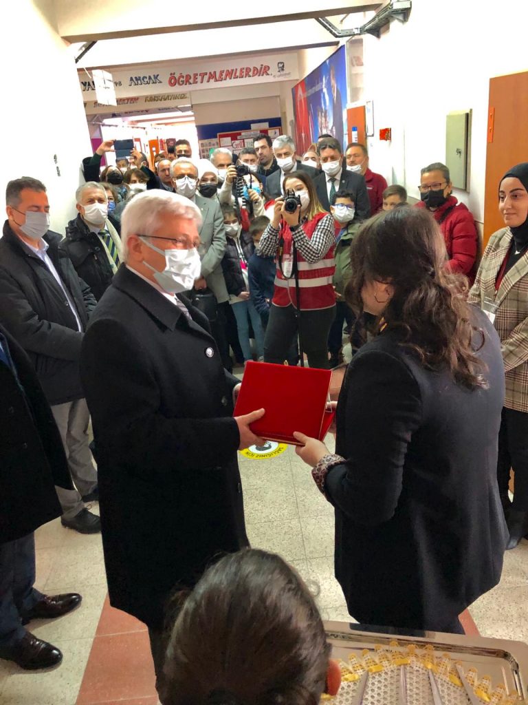 Bursa’nın iş insanlarından Network Marketing şirketi One More International ekibi Zeynel AÇIKEL, İmren GEÇKİN AÇIKEL ve Mehmet Ali ÇATALTAŞ öğrencilerin daha iyi şartlarda eğitim almalarına destek olmak adına  Okul Müdür Alper TAŞKIN’ a konferans salonunun eksiklerinin giderilmesi sözünü verdi.