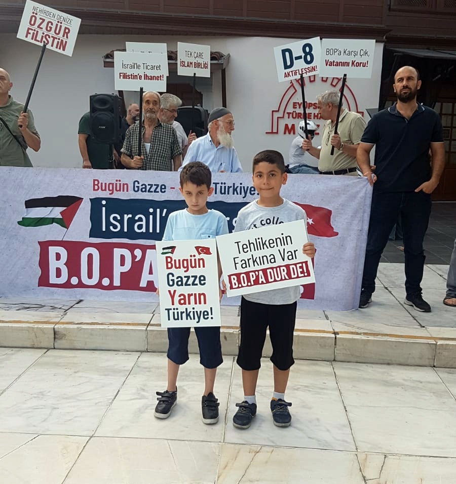 “Bugün burada, Eyüpsultan Camii Meydanı’nda, ihanetin ve zulmün belgesi olan Büyük Ortadoğu Projesi’ne dur demek ve Gazze’ye destek olmak için toplandık. Ülkemizin de içinde bulunduğu kadim coğrafyamız, uzun süredir bu şeytani projeden dolayı savaşlar ve büyük buhranlarla karşı karşıya kalmıştır.
