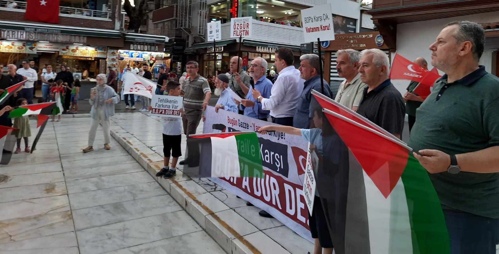 Saadet Partisi Eyüpsultan İlçe Başkanlığı, Eyüpsultan meydanında “Bugün Gazze-Yarın Türkiye! İsrail’e Karşı B.O.P’a Dur De!” sloganıyla Basın Açıklaması düzenledi.
