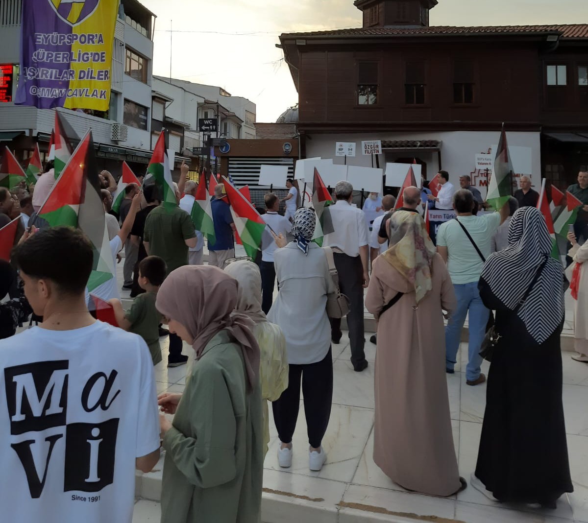 Bugün olduğu gibi bundan sonra da; isyanımızı, öfkemizi, direnişimizi sizlerle beraber büyüteceğiz. Katılımlarınızdan dolayı herkese teşekkür ederiz. Özgür Kudüs’te, Özgür Gazze’de ve Özgür Filistin’de buluşmak üzere Allah’a emanet olunuz.”dedi.