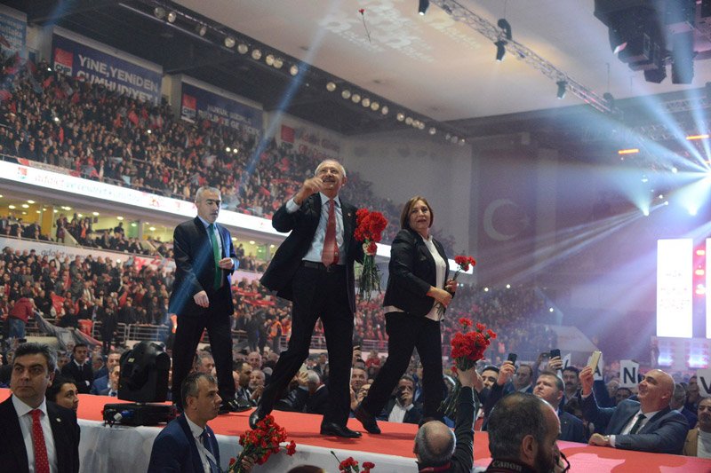 Kılıçdaroğlu salona girişinde eşiyle birlikte partililere karanfil attı…