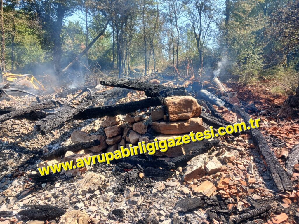 Yangın, ahşap yapılarda hızla yayıldı; ev ve samanlık tamamen kül oldu.