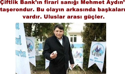 Çiftlik Bank’ın firari sanığı Mehmet Aydın’ taşerondur. Bu olayın arkasında başkaları vardır. Uluslar arası güçler.