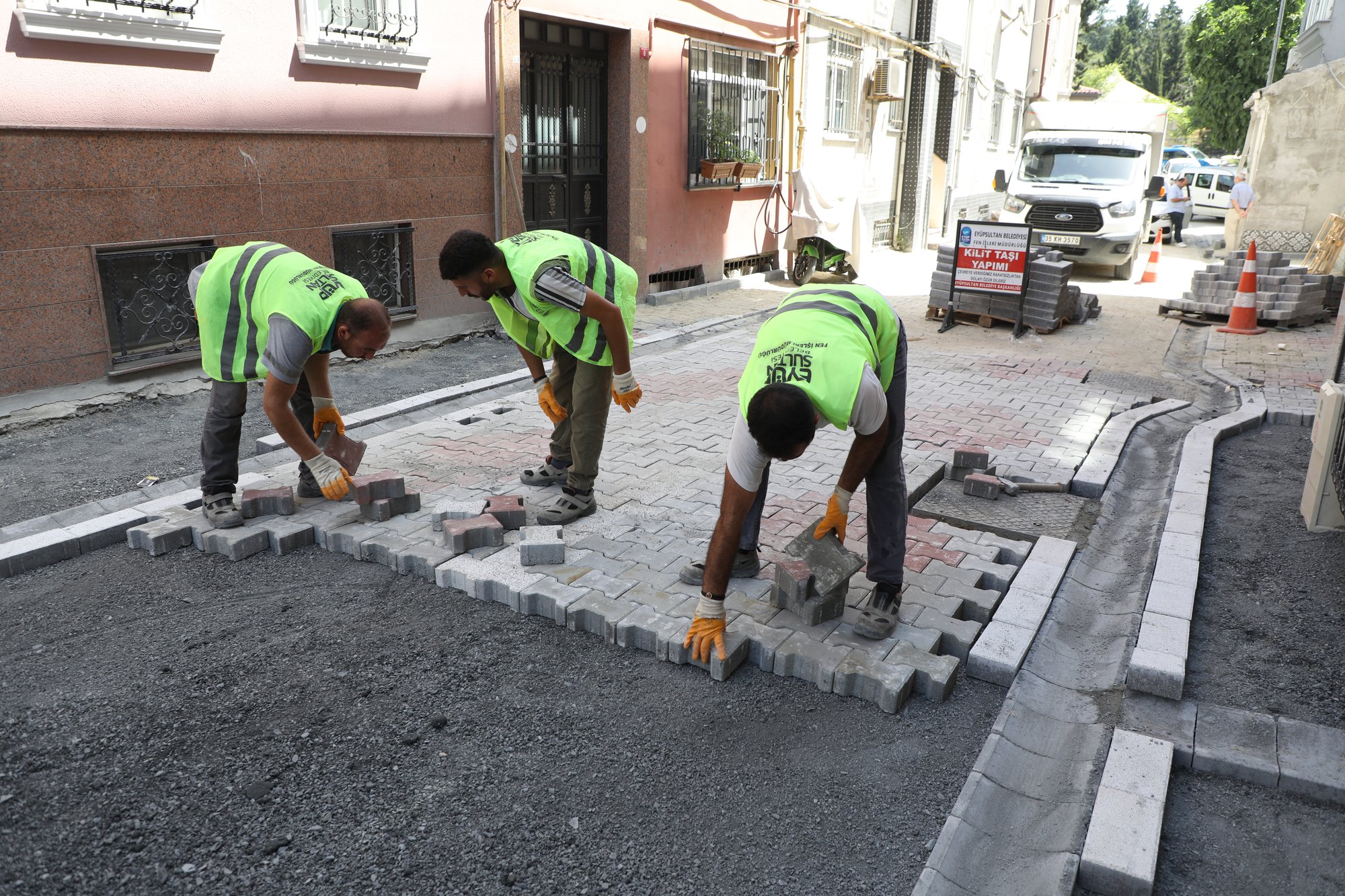 Vatandaşların herhangi bir mağduriyet yaşamaması için yoğun mesai harcayan ekipler, son olarak Defterdar Mahallesi Cebecibaşı Caddesi’nde kilit taşı kaplama çalışması yaptı.