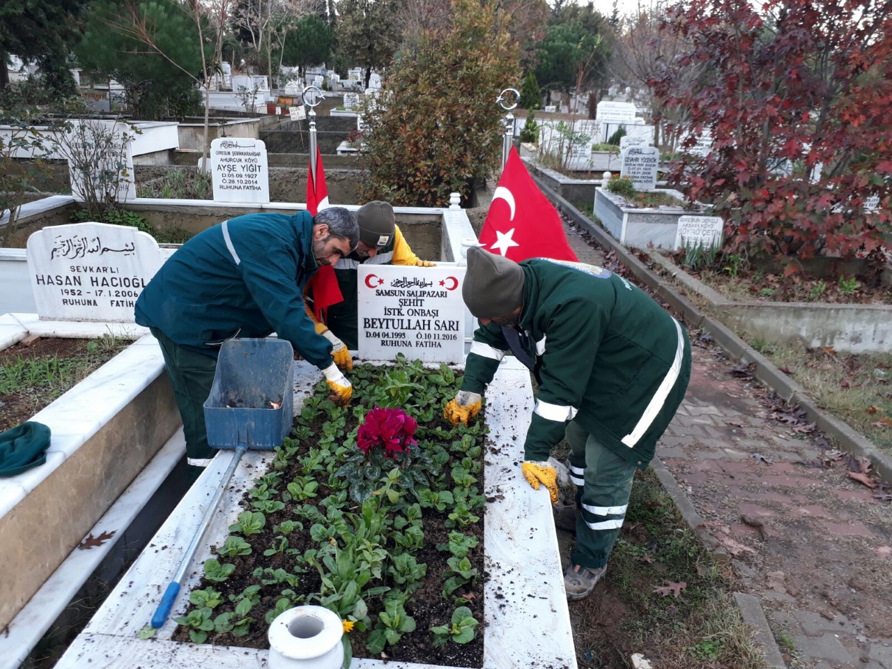 Şehit Kabirlerine Mevsimlik Çiçek Dikimi Yapıldı