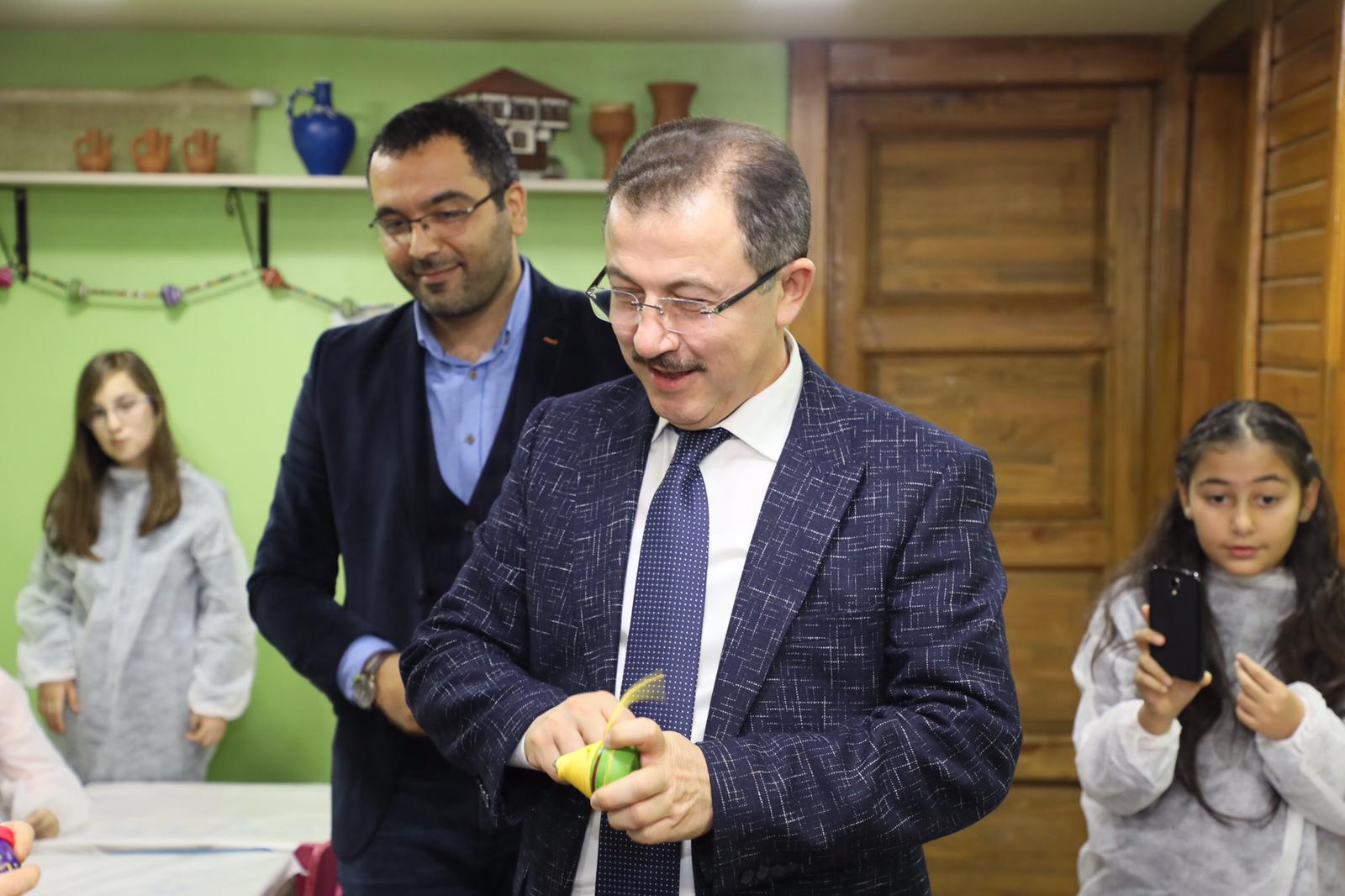 Deniz Köken, ziyareti sırasında atölyede bulunan çocuklarla vakit geçirerek onlarla sohbet etti, hatıra fotoğrafı çektirdi.