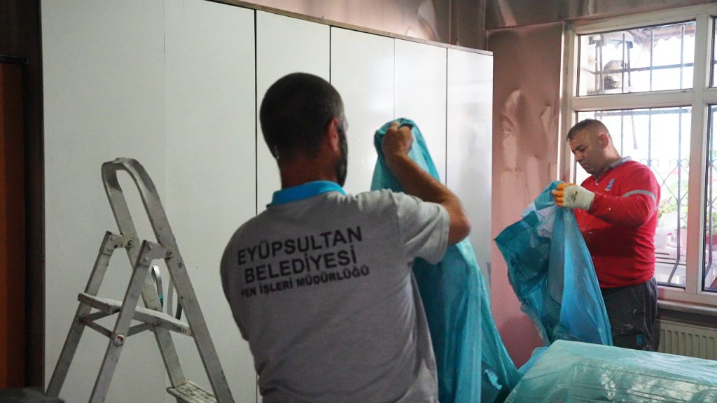 Eyüpsultan Belediyesi, sosyal belediyecilik anlayışı ile vatandaşlardan gelen talep ve ihtiyaçlar doğrultusunda, insan odaklı çalışmalar yapmaya devam ediyor. Güzeltepe Mahallesi’nde oturan ve çıkan yangın sonucu evi ağır hasar alan İlknur Toraman’ın evi, belediye ekipleri tarafından baştan aşağı boyandı.