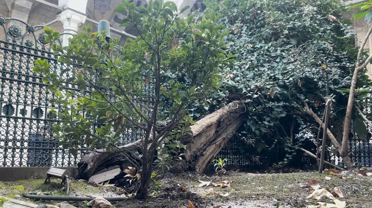 Eyüp Sultan cami avlusundaki 556 yıllık çınar ağacı devrildi …