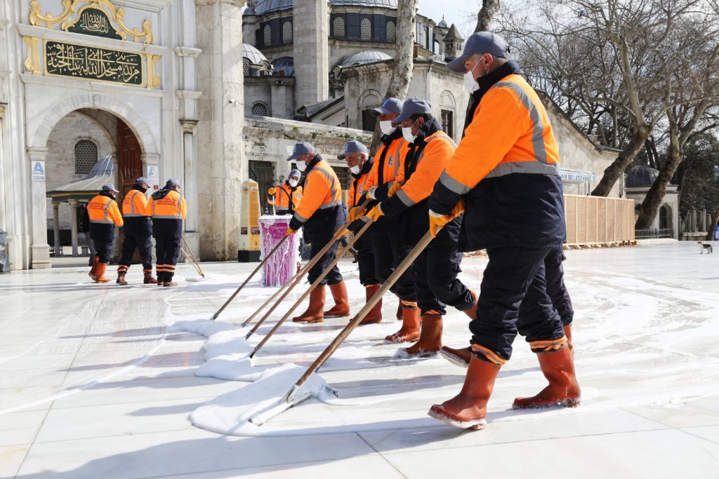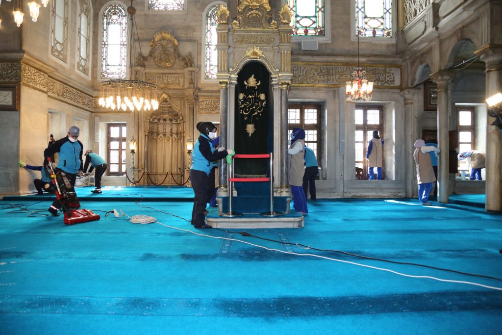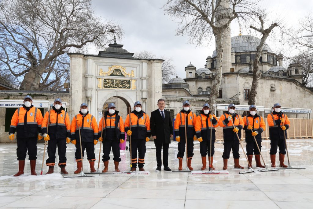 Yüzyıllardır Ramazan’ın en güzel şekilde yaşandığı, İslam aleminin gözbebeği Eyüpsultan’da Ramazan Ayı hazırlıkları kapsamında Eyüpsultan Camii Meydanı ve cami içerisi gül suyu ile yıkandı, temizlendi. Caminin içerisi, avlusu, abdest alma yerleri Eyüpsultan Belediyesi temizlik ekipleri tarafından en ince ayrıntısına kadar temizlendi.