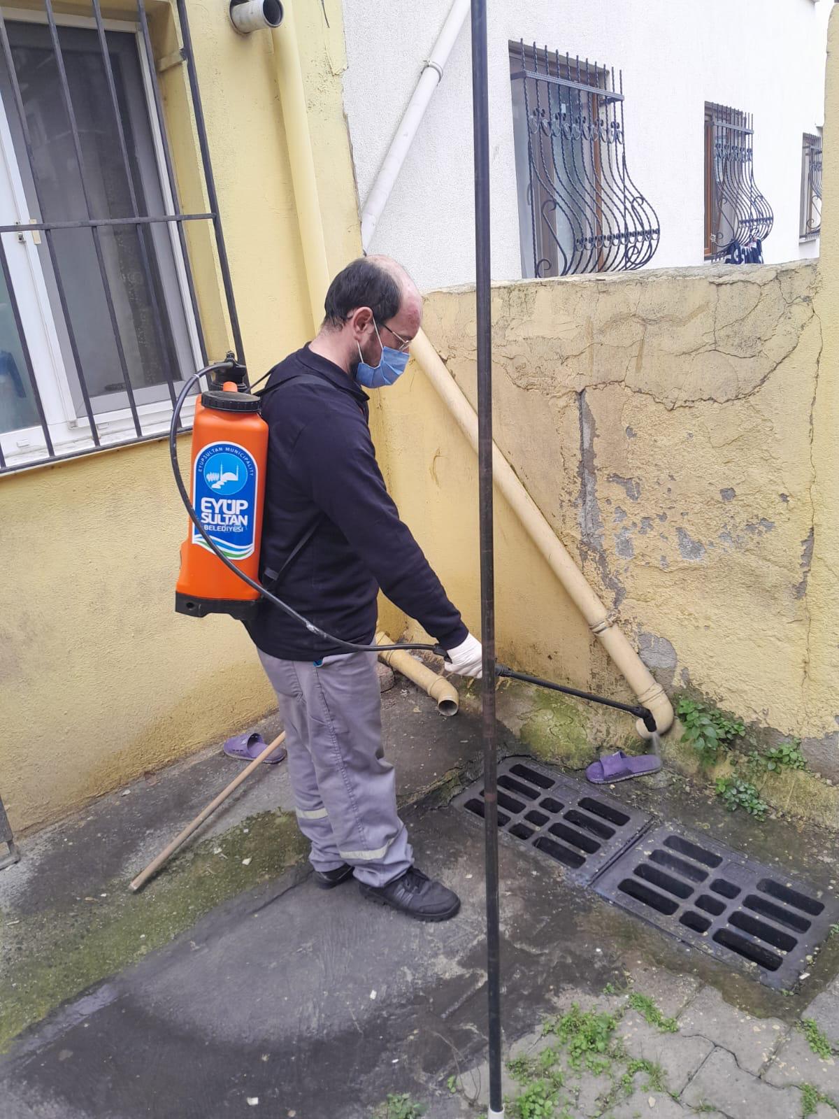 Eyüpsultan Belediyesi Veteriner İşleri Müdürlüğü, ilçenin tamamında sokaklarda ve kanalizasyonlarda yürüyen haşereler ve kemirgenlere karşı da rutin ilaçlama çalışmalarını sürdürüyor.