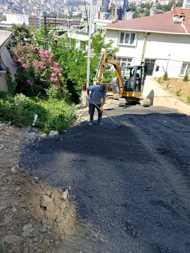 Alibeyköy okul yanı sokakta zemin tesviyesi ve asfalt kırığı serimi