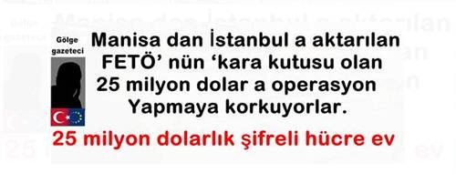 Manisa dan İstanbul a aktarılan FETÖ’ nün ‘kara kutusu olan 25 milyon dolar a operasyon yapmaya korkuyorlar