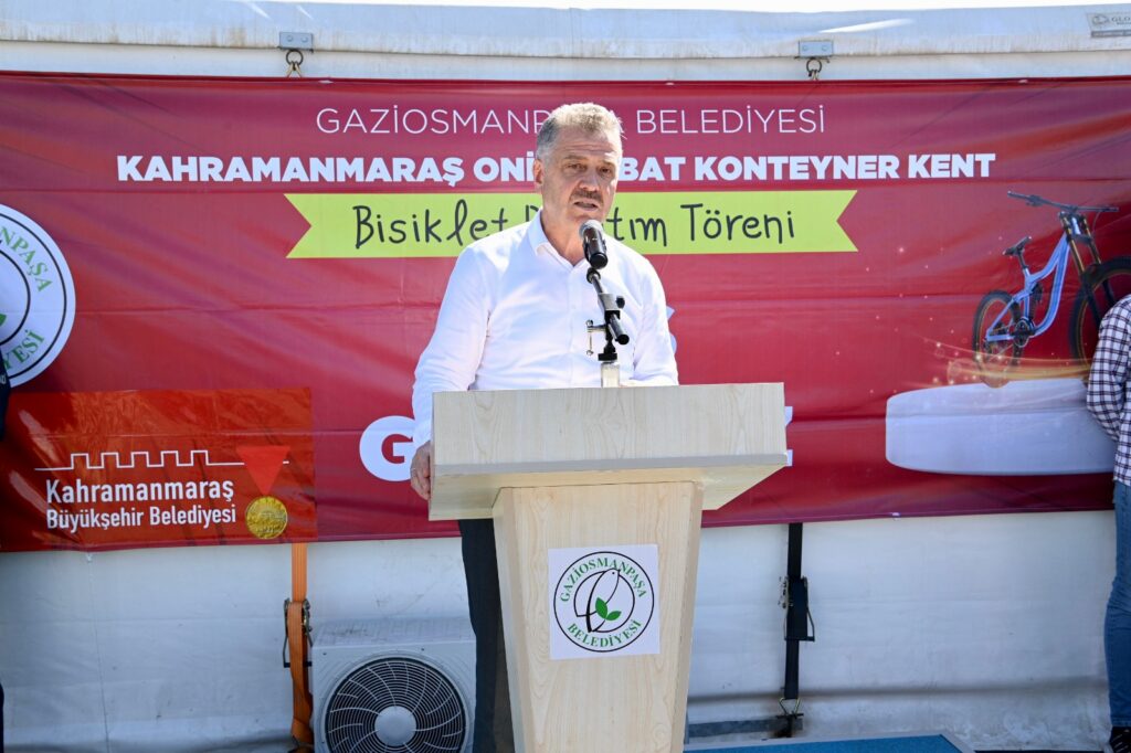 Dağıtımı gerçekleştirilen bisikletlerin çocuklara hayırlı olmasını dileyen Gaziosmanpaşa Belediye Başkanı Hasan Tahsin Usta, “6 Şubat depremlerinin ardından sık sık Kahramanmaraş’ı ziyaret edip vatandaşlarımızla bir araya geldik. Bugün de çocuklarımıza bisiklet dağıtımı için buradayız. Bu vesileyle depremde hayatını kaybeden vatandaşlarımıza bir kez daha Allah’tan rahmet diliyoruz. Çok zor bir süreç ancak Sayın Cumhurbaşkanımızın liderliğinde devlet-millet olarak deprem bölgesindeki yaraları sarmaya gayret ediyoruz. İlk günden itibaren tüm Türkiye olarak çok büyük bir dayanışma örneği gösteriyoruz. Bizler de imkânlarımız ölçüsünde sizlerin yanında olmaya çalışıyoruz. Biz birlikte güçlüyüz. Bugün dağıtımını gerçekleştirdiğimiz bisikletlerimiz yavrularımıza hayırlı olsun” cümlelerini kaydetti.
