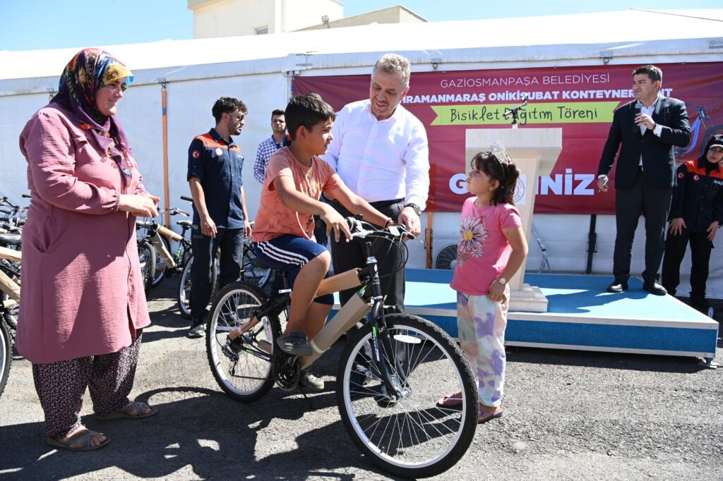 Gaziosmanpaşa Belediyesi, Kahramanmaraş Karacasu Geçici Barınma Merkezi’nde yaşayan depremzede çocuklara bisiklet hediye etti. Çocuklara bisikletlerini teslim eden Gaziosmanpaşa Belediye Başkanı Hasan Tahsin Usta, “Sayın Cumhurbaşkanımızın liderliğinde devlet-millet olarak deprem bölgesindeki yaraları sarmaya gayret ediyoruz” diye konuştu.