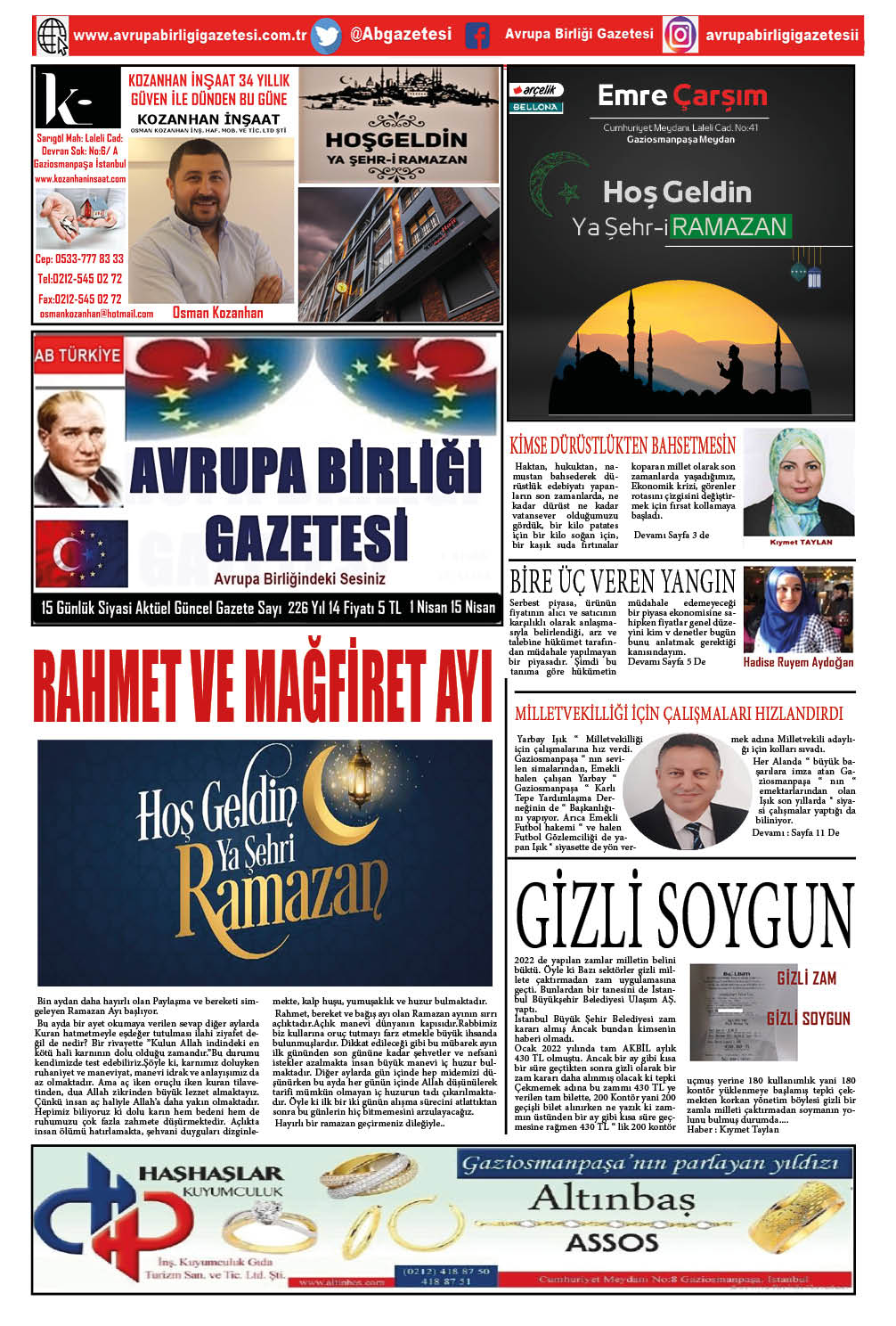 Avrupa Birliği Gazetesi 226 Sayımız çıktı