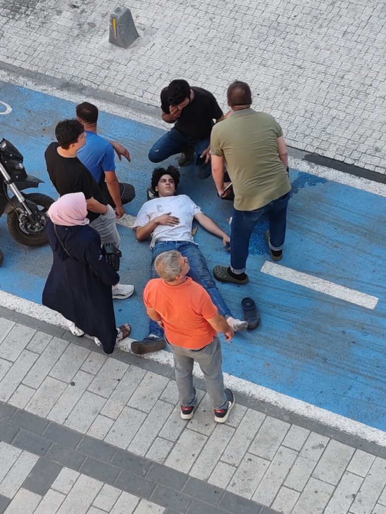 Yoldan geçen araçtan kaçarken bisiklet yolundaki dubalara sert bir giriş yapan genç yaralanarak yere yığıldı. Olay yerine ambulansın çağrıldığı olayda genç acılar içinde kıvrandı.