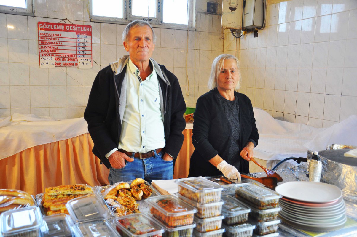“Ben Göktürk Sosyete Pazarı’na kurulduğu günden beri geliyorum. Daha önce Nejat Sabuncu İlköğretim Okulu’nun orada kuruluyordu, buraya 2006 yılında geldik. Burada evde hazırladığımız tarhana, salça, tatlı, kurabiye, gözleme gibi kendi mamullerimizi satıyoruz.