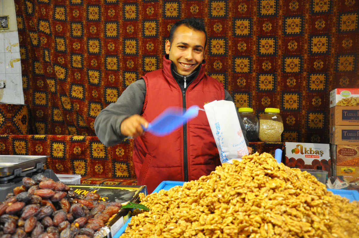 “Biz kuruyemiş, ceviz, kayısı, incir tarzı ürünler satıyoruz. Sosyete pazarına dükkânda da sattığımız daha seçmece ürünleri getiriyoruz. Kuruyemiş ve benzeri diğer sattığımız ürünler pahalı olduğu için daha üst tabakanın olduğu pazarları tercih ediyoruz. Buranın dışında Bahçeşehir, Ulus ve Yeşilköy pazarlarına gidiyoruz”