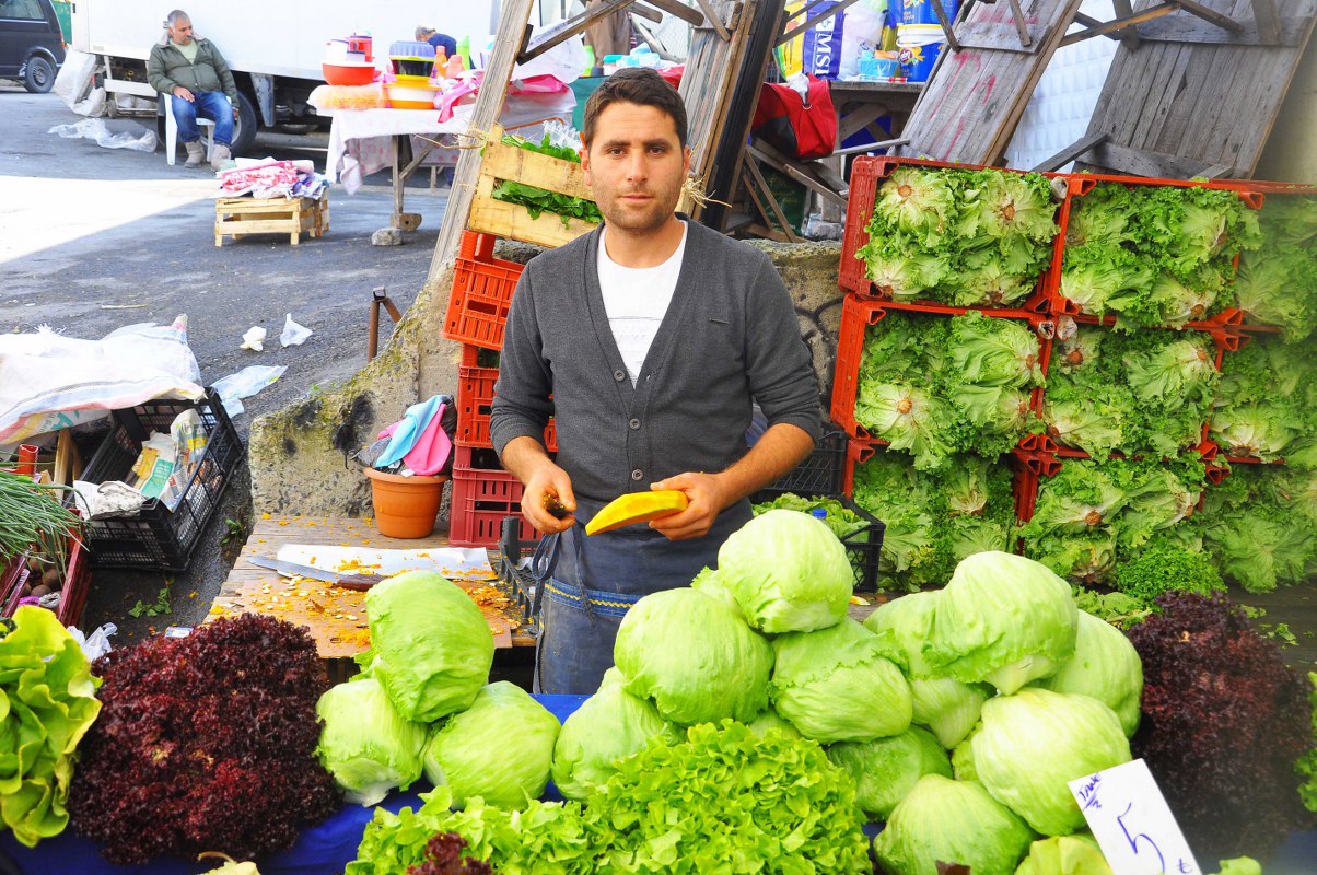 “Ben 15 yıldır pazarcılık yapıyorum. Genelde kışın tatlı kabağı, enginar, kıvırcık salata tarzı sebze ürünlerini satıyoruz. Burası sosyete pazarı olduğu için daha çok gelir düzeyi yüksek kesime hitap ediyor.