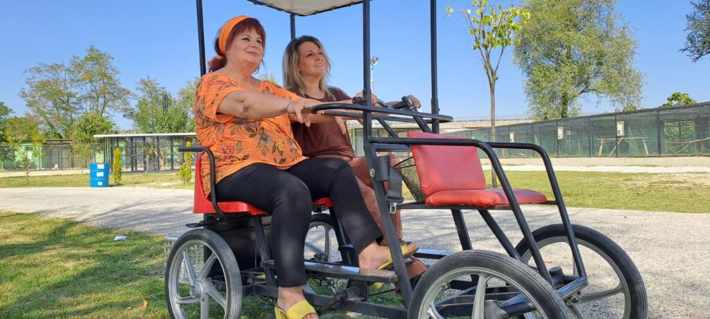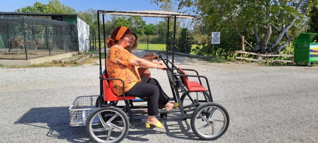 Tabiat parkında 4 tekerli fayton bisikletlerle hem geziliyor hem de spor yapılıyor. Gelen misafirler fayton bisikletlerde hem gezmek hem spor yapmak için sıra bekliyorlar.