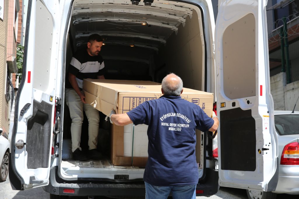 Eyüpsultan’da ikamet eden ihtiyaç sahibi ailelerin evlerindeki eşya gereksinimlerini gidermek ve vatandaşların daha iyi şartlarda yaşaması amacıyla ailelere sıfır ev eşyası yardımında bulunuluyor.