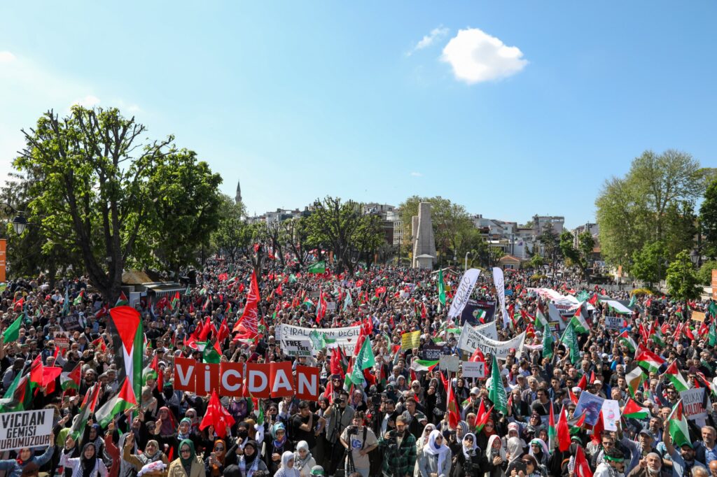 İstanbul’da İHH İnsani Yardım Vakfı öncülüğünde işgal rejimi İsrail’in Filistin’de uyguladığı soykırıma karşı yürüyüş düzenlendi. Katılımcılar güzergah boyunca, “Filistin Halkı Yalnız Değildir”, “Katil İsrail, İşbirlikçi ABD”, “Mehmetçik Gazze’ye” sloganları attı, tekbirler getirdi. Yürüyüş, Beyazıt Meydanı’ndan başlayarak Ayasofya Camii önüne kadar devam etti. Yapılan yürüyüş sonrasında Sümbül Efendi Camii İmam Hatibi Murat Tokgöz, Kur’an-ı Kerim tilavetinde bulundu. Tilavetin ardından İHH İnsani Yardım Vakfı Genel Başkanı Av. Bülent Yıldırım, Özgürlük Filosu Koalisyonu Sözcüsü Aktivist Ann Wright ve Aksa Eğitim ve Dayanışma Vakfı Onursal Başkanı Ramazan Kayan konuşma yaptı. Konuşmaların yanı sıra Grup Genç programda ezgiler seslendirdi.