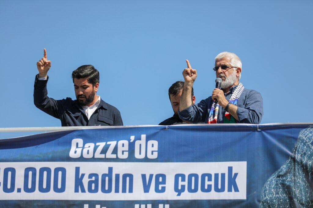 Kur’an-ı Kerim tilavetinin ardından konuşma yapan İHH İnsani Yardım Vakfı Başkanı Av. Bülent Yıldırım “Biz bütün dünyaya sesleniyoruz, İsrail’le ticareti kesin. Ülkemiz ticareti yasakladı ama yetkililerden bir ricamız daha var. Menşei değiştirerek ticaret yapan şirketlerin üzerine de gidin. Onlar savaş suçu işlemiş gibidir, akaryakıt gönderen ülkeler de var. Buradan herkese şu mesajı iletiyorum: Kim Filistin’in yanında olursa, Allah katında değerli olur. Şükürler olsun halkımızla, devletimizle Filistin’in yanındayız” şeklinde konuştu.